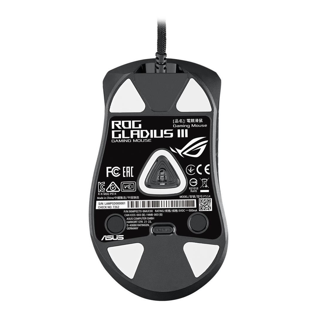 Mouse gaming ASUS ROG Gladius III, RGB, switch-uri Omron, 19000 dpi, design exclusiv socket push-fit II, zero latențe la clic, ROG Omni Mouse Feet, ROG Paracord, iluminare Aura Sync