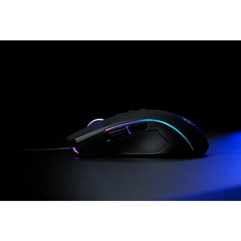 Mouse gaming Redragon Lonewolf 2 negru iluminare RGB, 32000 DPI, polling rate: 1000Hz, acceleratie: 40G, switch-uri Omron, numar butoane mouse: 10 programabile, se pot memora 5 profile, iluminare LED RGB a mouse-ului (7 moduri de iluminare) , picioruse de teflon, lungime cablu mouse: 1.8m, dimensiuni: 129x67.5x40.5mm, greutate: 166g (incluzand o greutate de 9.4g), USB