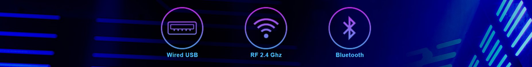 Gladius III Wireless poate fi conectat prin intermediul unei conexiuni radio ultra-rapide în banda de 2,4 GHz, prin economicoasa conexiune Bluetooth LE sau prin cablu USB. Alege opțiunea care se potrivește cel mai bine cu scenariul de utilizare.