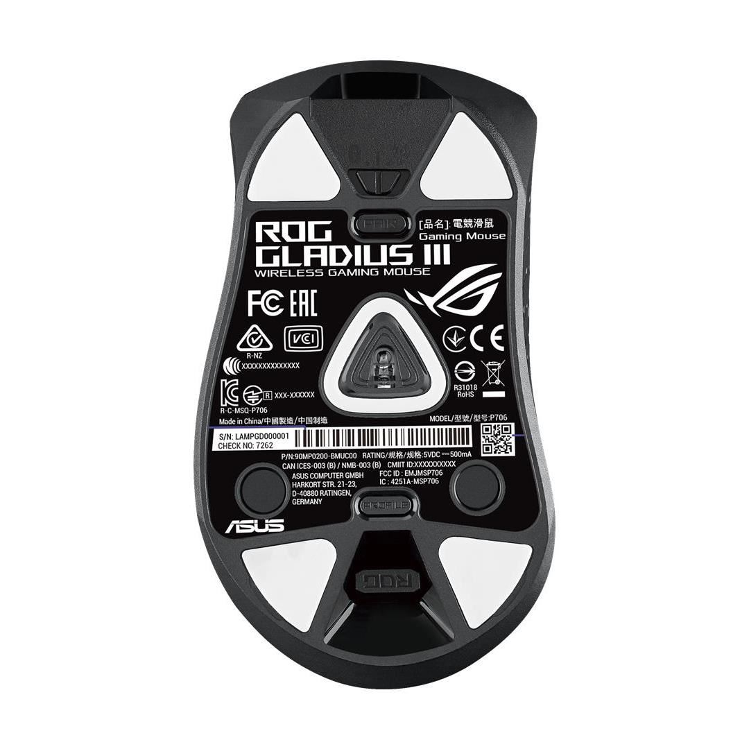 Mouse gaming wireless ASUS ROG Gladius III Wireless, RGB, conectivitate triplu-mod (cu fir /2.4 GHz/Bluetooth), switch-uri Omron, senzor 19.000 dpi, design exclusiv socket push-fit II, zero latențe la clic, ROG Omni Mouse Feet, ROG Paracord, iluminare Aura Sync