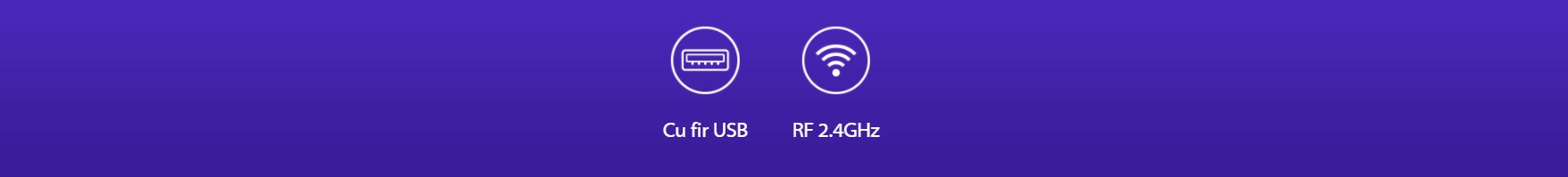 - Conectivitate optimizata cu wireless 2.4 GHz si fir USB