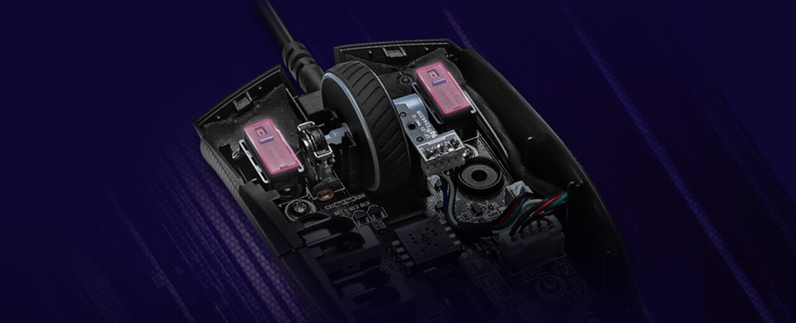 - Designul exclusiv al switch-urilor cu socket push-fit pentru a personaliza rezistenta la click si pentru a prelungi durata de viata a mouse-ului