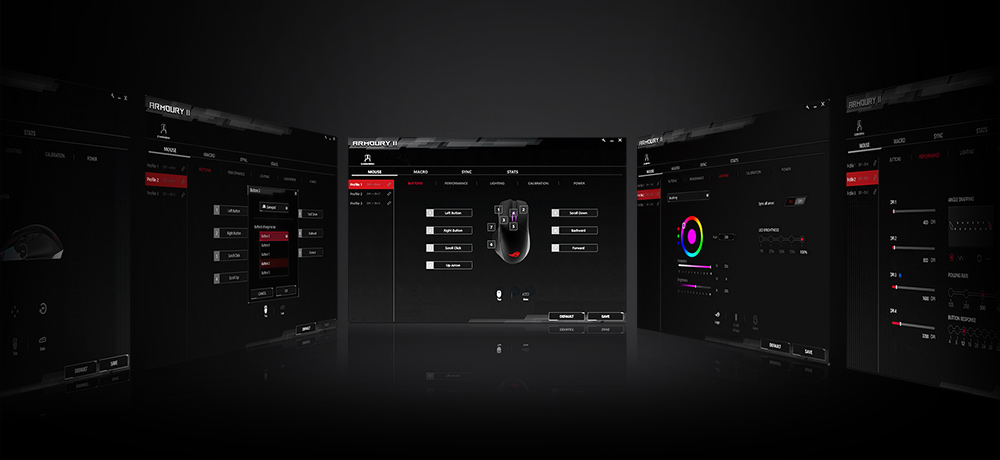 ASUS Armoury II este un utilitar îmbunătățit de configurare a perifericelor pe bază de driver, care oferă o mulțime de opțiuni de control. O interfață intuitivă îți permite să reglezi cu ușurință ROG Chakram pentru a se potrivi stilului tău de joc – poți ajusta setările pentru performanță și calibrarea suprafețelor, poți programa și mapa butoane, poți seta intrarea joystick-ului, poți personaliza efectele de iluminare și altele. Poți chiar să urmărești în timp real statisticile hardware ale sistemului în timp ce te joci.