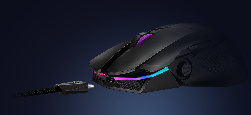 Folosește conectorul USB Tip-C Al lui ROG Chakram pentru până la 12 ore de joc cu o încărcare rapidă de numai 15 minute.