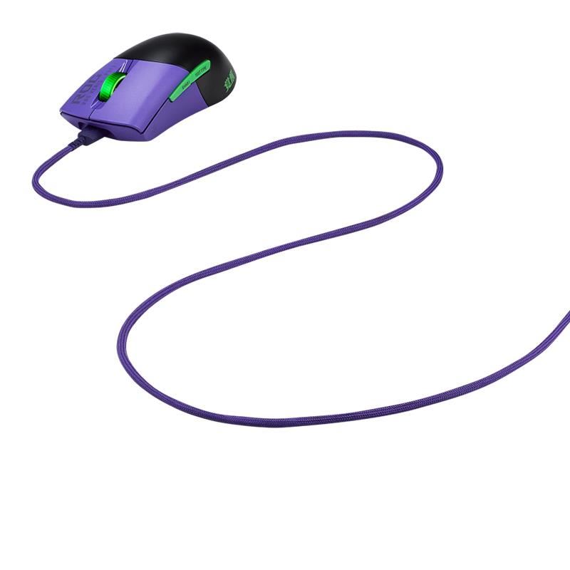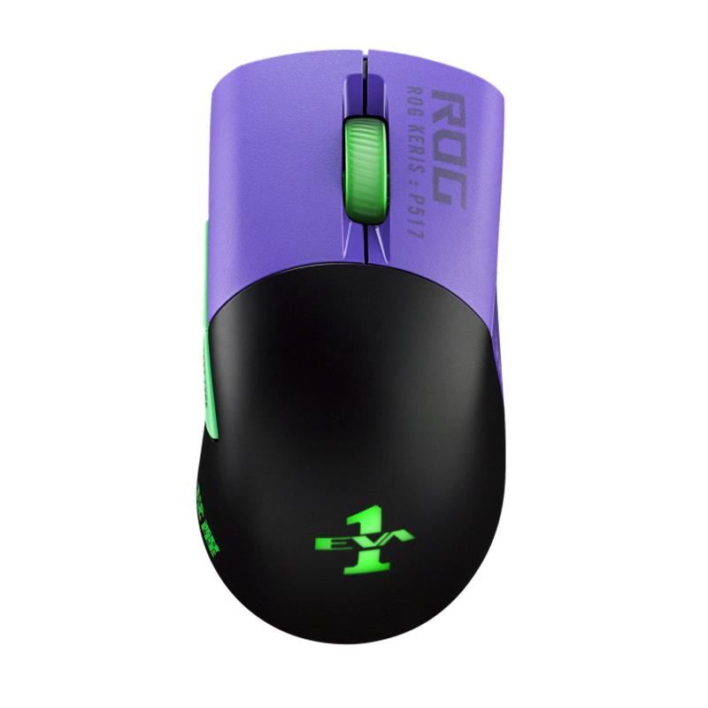 Mouse gaming wireless bluetooth si cu fir ASUS ROG Keris Wireless EVA Edition mov, 16400 DPI, acceleratie 40G, 400IPS, polling rate: 1000Hz, senzor optic PixArt PMW3327, numar butoane: 7 (7 programabile), include program pentru configurare (macro-uri, profile, mod iluminare, etc.), butoane laterale schimbabile (pachetul contine 2 seturi, culori diferite), compatibil Asus Aura Sync, picioruse de teflon ROG Omni, conector USB placat cu aur, cablu detasabil ROG Paracord, lungime cablu: 2m, dimensiuni: 118x62x39mm, greutate: 79g