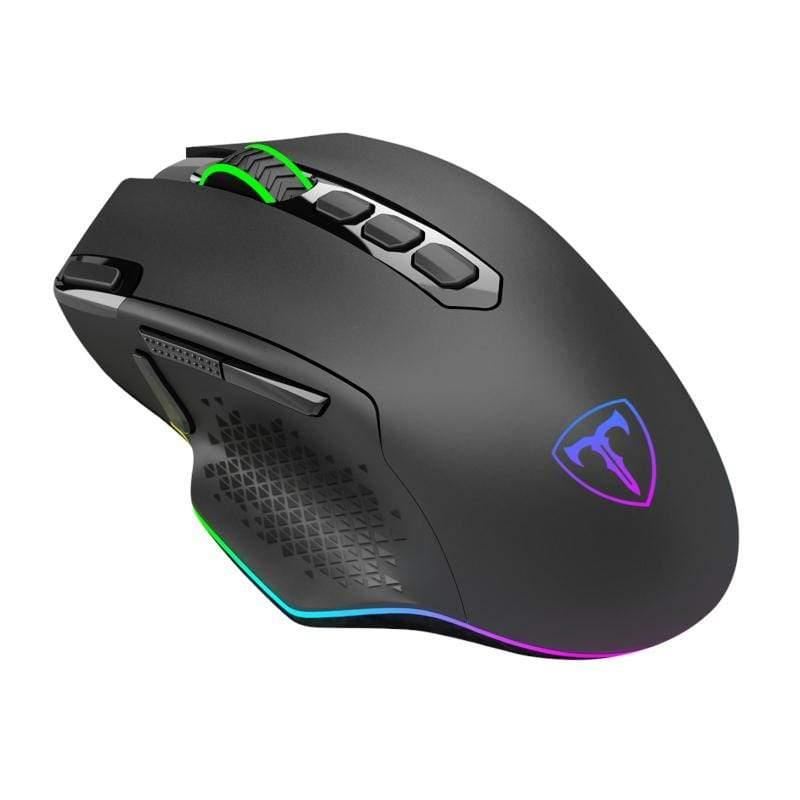 Mouse gaming wireless T-Dagger Dark Angel Pro negru , 10000 DPI, 1000Hz, 20G acceleratie, numar butoane mouse: 11 (9 programabile), iluminare LED RGB a mouse-ului, picioruse de teflon, buton rapid fire, lungime cablu mouse: 1.8m, dongle USB, dimensiuni: 130x83x45mm, USB