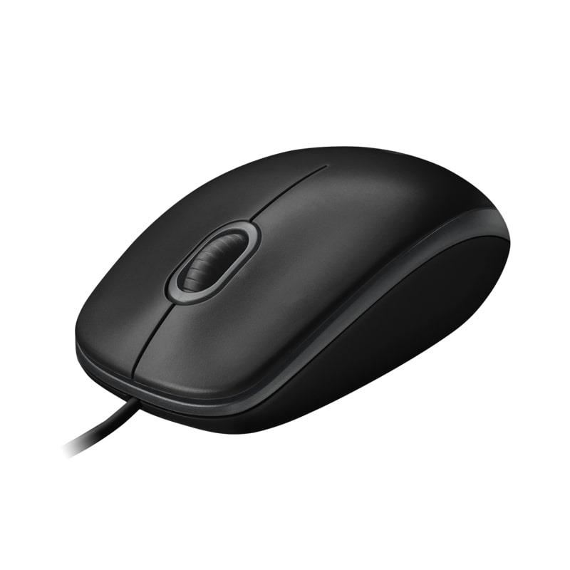 Mouse Logitech B100 negru, mouse optic cu fir, 800 DPI, numar butoane: 3, lungime cablu: 1.8m, conector: USB