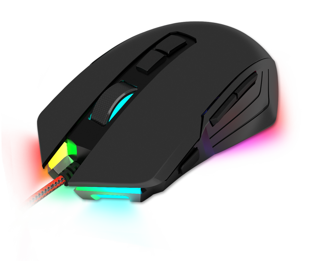 Redragon Dagger RGB, 10000 DPI, numar butoane mouse: 9, iluminare LED RGB a mouse-ului (5 moduri de iluminare) , picioruse de teflon, lungime cablu mouse: 1.8m, dimensiuni: 117x63x37mm, greutate: 130g, USB