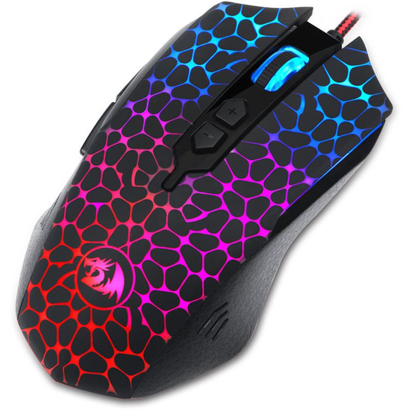 Redragon Inquisitor RGB, 10000 DPI, numar butoane mouse: 8, iluminare LED RGB a mouse-ului , picioruse de teflon, lungime cablu mouse: 1.8m, dimensiuni: 127.1x81x41.2mm, greutate: 147.2g, USB