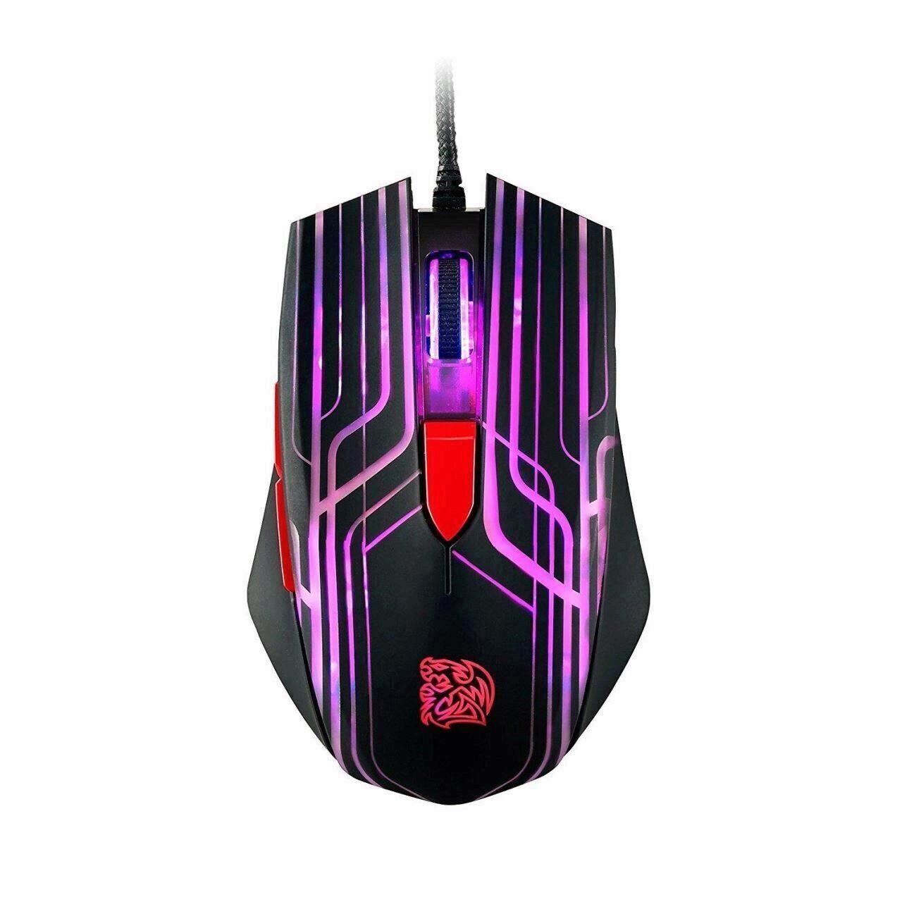 Tt eSPORTS TALON, 3000 DPI, design ambidextru, senzor infrarosu, numar butoane: 6, efecte de iluminare in 6 culori, lungime cablu: 1.5m, picioare de teflon, conector USB placat cu aur, dimensiuni: 117 x 76 x 41mm, USB