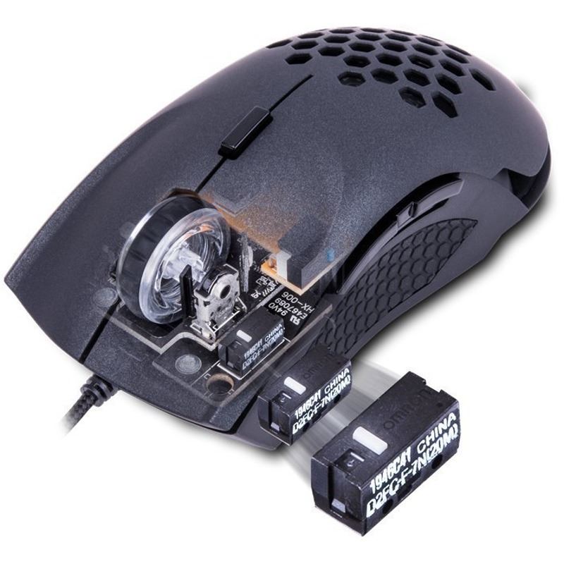 Tt eSPORTS VENTUS X Plus, 10000 DPI, iluminare LED rosie cu diverse efecte de iluminare, senzor laser AVAGO 9500, 150 IPS, acceleratie 30G, numar butoane: 6 (programabile), micro switch-uri Omron (durata de viata: 20 milioane click-uri), design cu gauri de aerisire tip fagure pentru prevenirea transpiratiei palmei, 256 KB memorie on-board pentru salvarea setarilor (5 profile, 30 macro-uri, software pentru configurare New Tt eSPORTS GUI), polling rate: 1000Hz, 500Hz, 250Hz sau 125Hz (1ms, 2ms, 4ms sau 8ms), greutati aditionale: 4.5g x3, lungime cablu: 1.8m, picioare de teflon, conector USB placat cu aur, dimensiuni: 128.8 x 71 x 42.6mm, USB