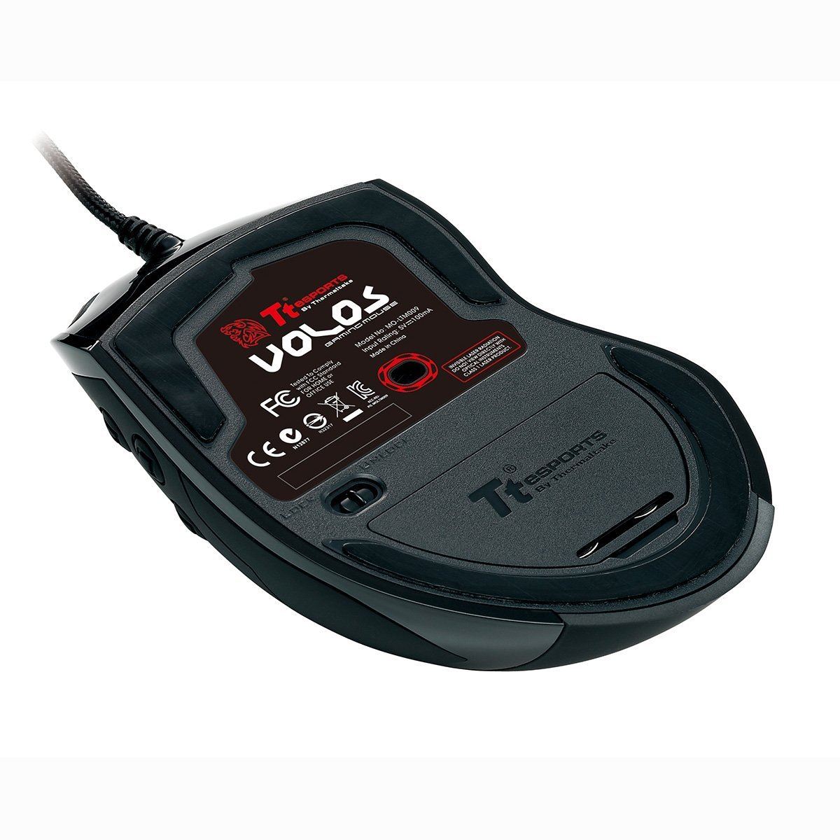 Tt eSPORTS VOLOS Black, design special pentru jocuri MOBA/MMORPG, 8200 DPI, senzor laser, numar butoane: 14 (programabile), posibilitatea schimbarii culorii care ilumineaza mouse-ul (16.8 milioane culori disponibile), 4MB memorie on-board (10 profile, 140 macro-uri programabile, salvarea setarilor), switch-uri Omron (durata de viata: 5 milioane click-uri), greutati: 4.5g x7, lungime cablu: 1.8m, picioare de teflon, conector USB placat cu aur, dimensiuni: 129 x 79 x 43mm, USB