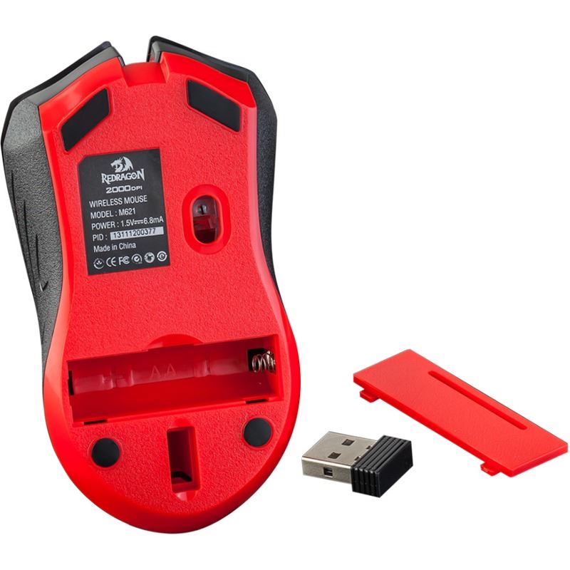 Redragon M621 Wireless Mouse, 2000 DPI, senzor infrarosu Avago ce functioneaza pe aproape toate suprafetele, numar butoane: 4, picioruse de teflon, conector USB placat cu aur, distanta de functionare: 15m, nano receiver, dimensiuni: 118x68x40mm, greutate: 70g (excluzand bateria), USB