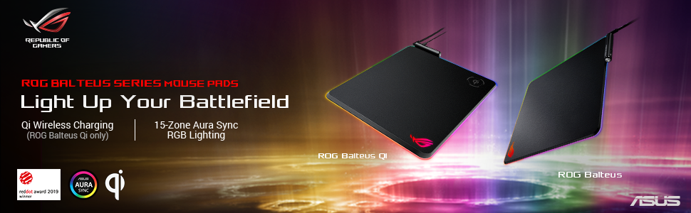 ROG Balteus Qi este un mousepad de gaming care aduce confortul încărcării wireless Qi pe birou. Suprafața sa mare, cu orientare portret, oferă spațiu suficient pentru a juca în condiții de confort în timp ce încarcă dispozitivele compatibile, iar finisajul cu micro-textură este optimizat pentru urmărire ultrarapidă. Dispunând de 15 zone individuale de iluminare Aura Sync RGB personalizabile, pregătiți-vă să vă jucați in propriul stil.