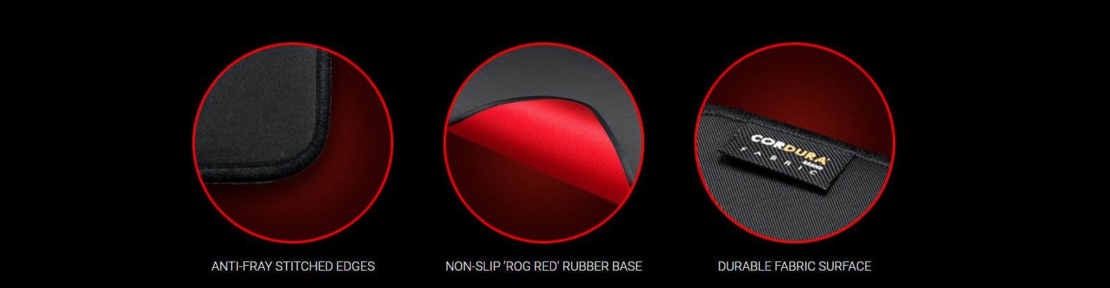 Cu suprafața sa durabilă din țesătură Cordura Lite, marginile cusute anti-rupere foarte rezistente și o bază ROG cauciucată, de culoare roșie, pentru prevenirea alunecării care prinde cu fermitate orice suprafață, ROG Scabbard este un mousepad de gaming de lungă durată conceput pentru a îndura cele mai grele dintre bătălii și mult mai mult
