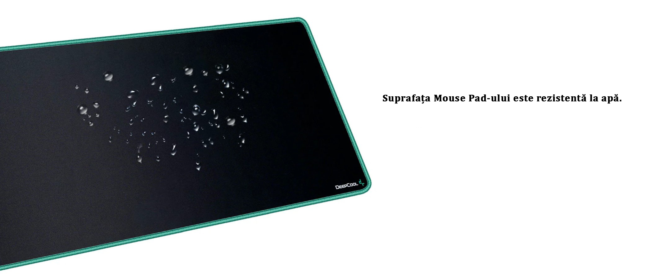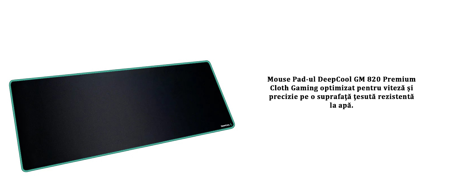 Mousepad gaming Deepcool GM820 negru, material suprafata: textil rezistent la apa, material baza: cauciuc natural, margini cusute pentru rezistenta superioara si confort, dimensiuni: 900x340x3mm