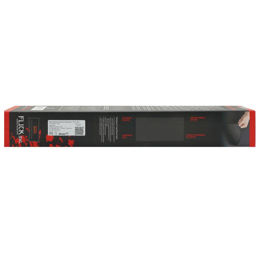 Mousepad gaming Redragon Flick 3XL, material suprafata: interlaced silk fibers, material baza: processed foam rubber, rezistent la apa si usor de curatat, margini cusute pentru rezistenta sporita, dimensiuni: 1219 x 610 x 3mm