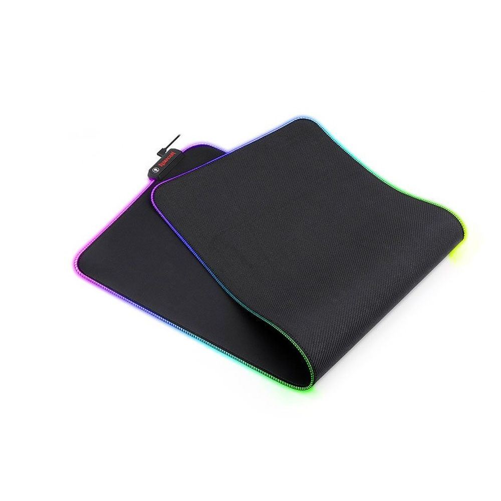 Mousepad gaming Redragon Neptune negru iluminare RGB, material suprafata: nano-textured cloth, material baza: processed foam rubber, rezistent la apa si usor de curatat, iluminare RGB pe margini, buton pentru schimbarea efectului de iluminare (9 moduri), margini cusute pentru rezistenta sporita, cablu detasabil cu conector USB Type-C, lungime cablu: 150cm, dimensiuni: 800 x 300 x 3mm