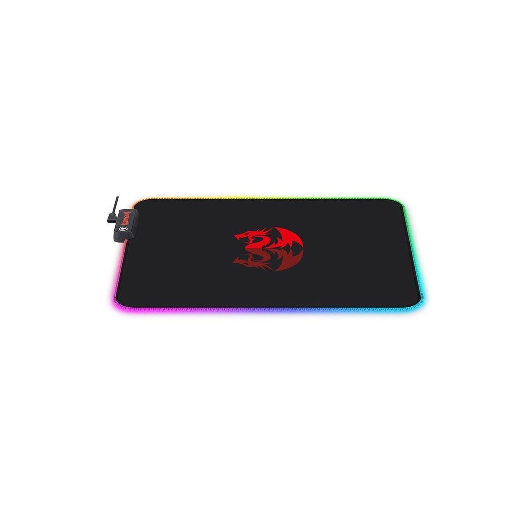 Mousepad gaming Redragon Pluto negru iluminare RGB, material suprafata: nano-textured cloth, material baza: processed foam rubber, rezistent la apa si usor de curatat, iluminare RGB pe margini, buton pentru schimbarea efectului de iluminare (9 moduri), margini cusute pentru rezistenta sporita, cablu detasabil cu conector USB Type-C, lungime cablu: 150cm, dimensiuni: 330 x 260 x 3mm