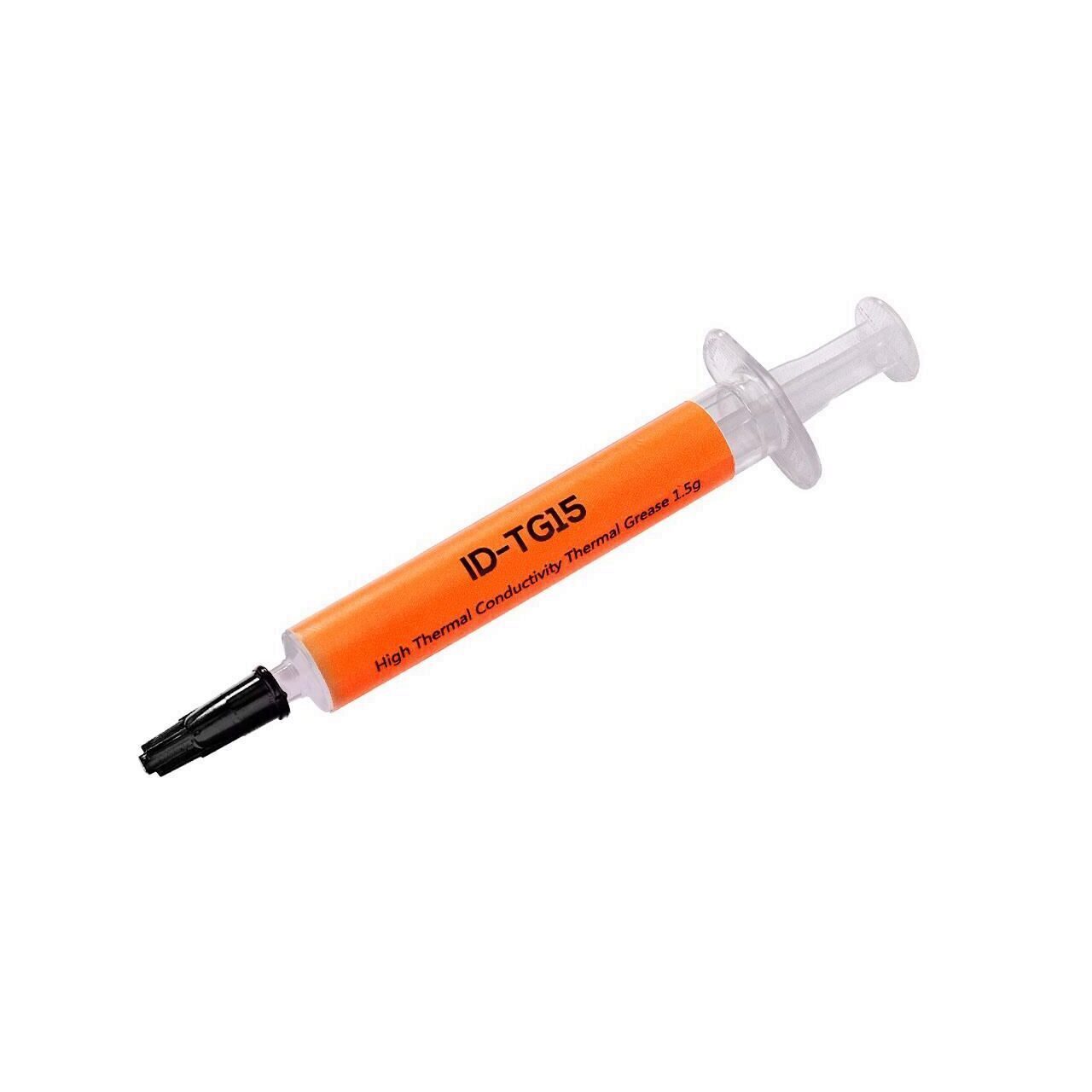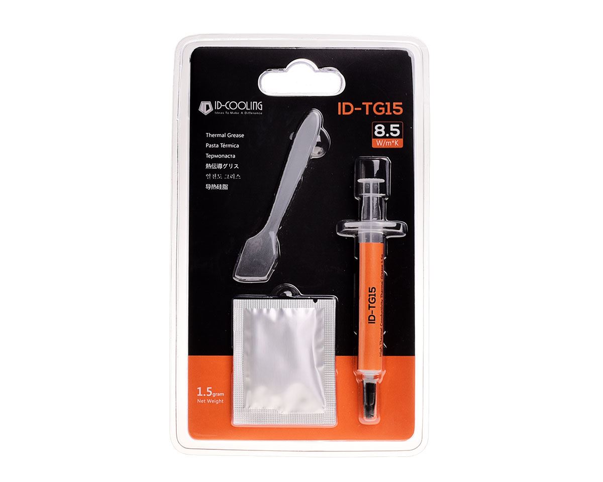 Pasta termica ID-Cooling ID-TG15, 1.5g, culoare: gri, conductivitate termica: > 8.5 W/m-K, impedanta termica: < 0.032 ℃-in2/W, constanta dielectrica: 5, densitate: 3.5g/cm3, vascozitate: 160 PAS , temperaturi de utilizare: -40 ~ 180℃