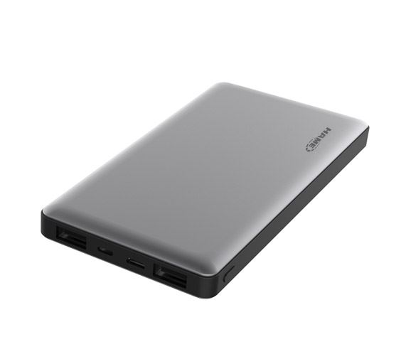 Hame P50C 10000mAh Grey Power Bank capacitate: 10000mAh, input: 5V/3A 9V/2A, output1: 5V/3A 9V/2A 12V/1.5A, output2: 5V/3A, suporta protocolul de incarcare rapida QC3.0 (Quick Charge 3.0), baterii Li-polymer, include cablu microUSB, conectori: 1x microUSB, 1x USB Type-C (input/output), 2x USB (output), dimensiuni: 135.5x70x13.5mm, greutate: 150g