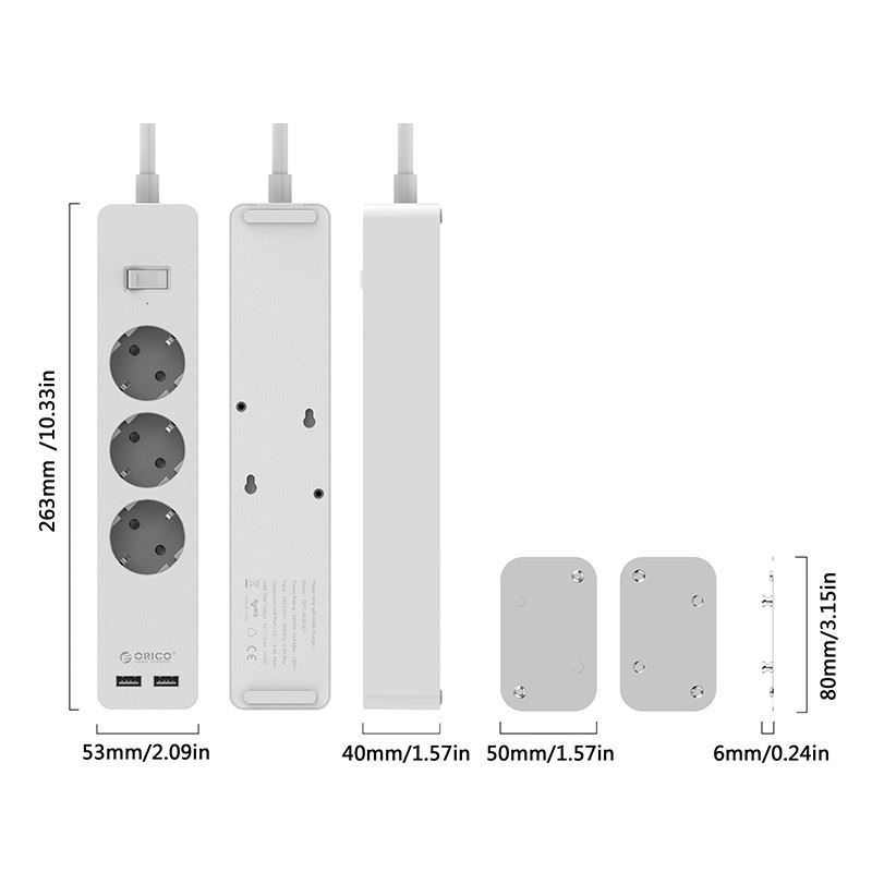 Prelungitor Orico GPC-3A2U cu 2 port-uri USB alb, ofera protectie la supratensiune (power rating: 4000W), comutator pentru pornire/oprire, conectori: 3x CEE, 2x USB (2x 5V2.4A 12W Max), lungime: 1.5m