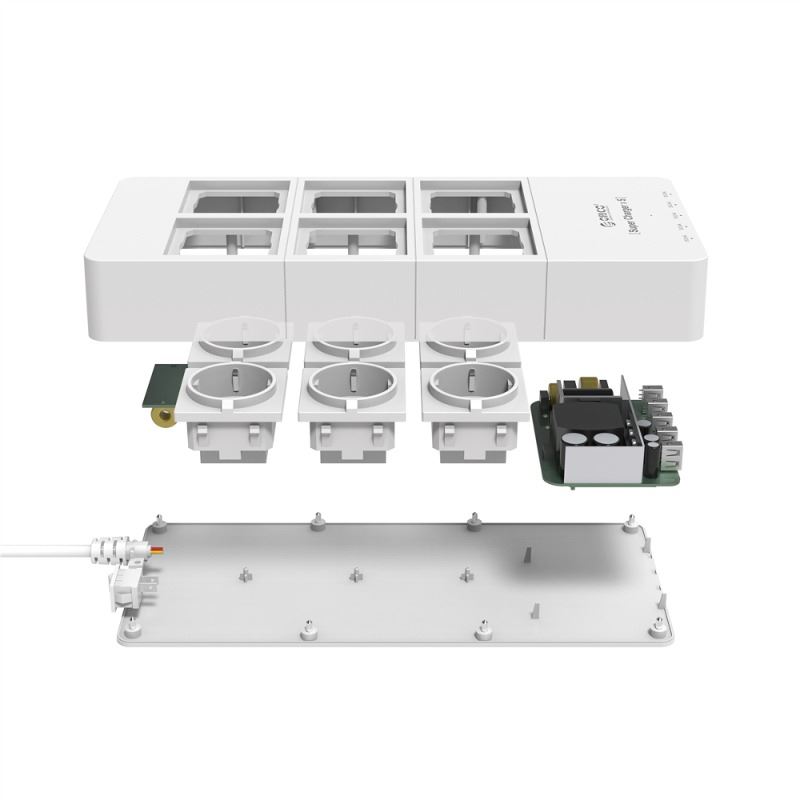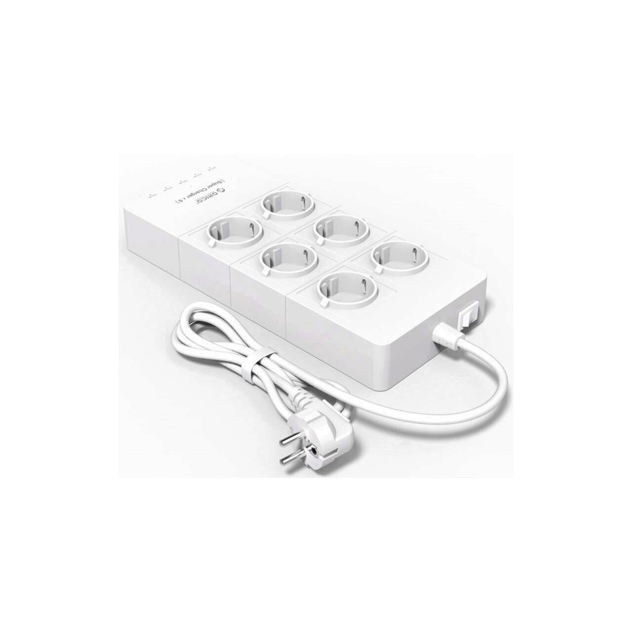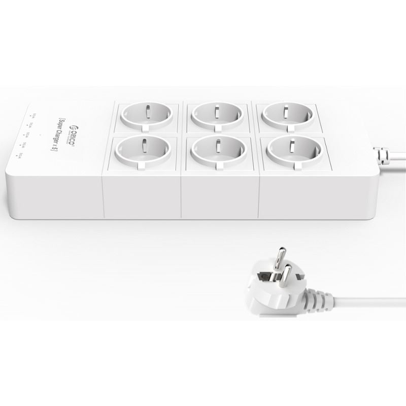 Orico HPC-6A5U Home Power Center White, ofera protectie la supratensiune (power rating: 2500W, surge protector energy: 1700J, peak current: 15000A), comutator pentru pornire/oprire, conectori: 6x CEE 7/3 / Schuko, 5x USB (5x 5V2.4A 40W Max, power rating: 5V8A 40W), lungime: 1.5m