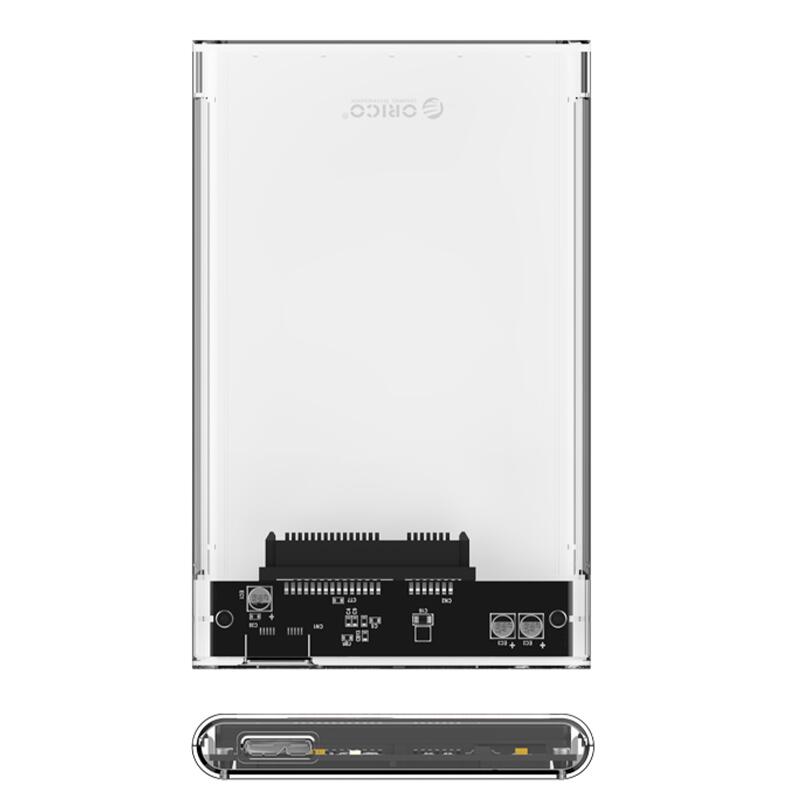 Orico 2139U3 Transparent USB 3.0 Tool Free 2.5” SATA External Enclosure, compatibil cu HDD/SSD 2.5” SATA (grosime maxima 9.5mm), capacitate maxima: 2TB, conectivitate USB 3.0, constructie din plastic, include cablu USB 3.0, plug and play, posibilitate hot swap, compatibilitate: Windows/Mac/Linux/Unix, dimensiuni: 124.5 x 79 x 13mm