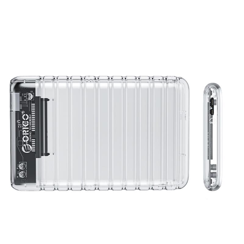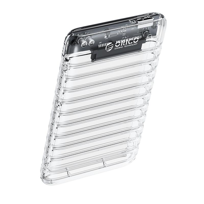 Orico 2139U3 Transparent USB 3.0 Tool Free 2.5” SATA External Enclosure, compatibil cu HDD/SSD 2.5” SATA (grosime maxima 9.5mm), capacitate maxima: 2TB, conectivitate USB 3.0, constructie din plastic, include cablu USB 3.0, plug and play, posibilitate hot swap, compatibilitate: Windows/Mac/Linux/Unix, dimensiuni: 124.5 x 79 x 13mm