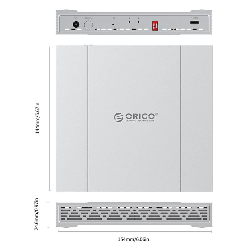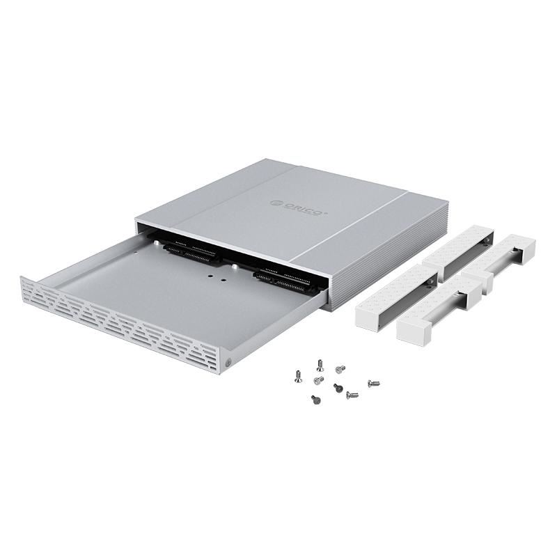 Rack HDD Orico 2529RC3 USB 3.1 2x 2.5” RAID argintiu, protocol RAID 0, include suport, compatibil cu 2x HDD/SSD 2.5” SATA (grosime maxima 9.5mm), capacitate maxima: 4TB (2x 2TB) , conectivitate USB 3.1 6Gbps, constructie din aluminiu, include cablu USB 3.1, plug and play, protectii: shock proof / overheat protection, inlude alimentator, compatibilitate: Windows/Mac/Linux/Unix, dimensiuni: 153x144x25mm