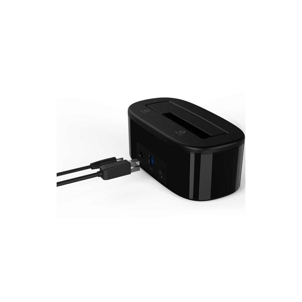 Orico 6218US3 USB 3.0 HDD Docking Station Black, compatibil cu HDD/SSD 2.5”/3.5” SATA, capacitate maxima 8TB, conectivitate USB 3.0, include cablu USB 3.0, plug and play, compatibil Windows/Mac OS, lungime cablu: 1m, dimensiuni: 142 x 74 x 58mm