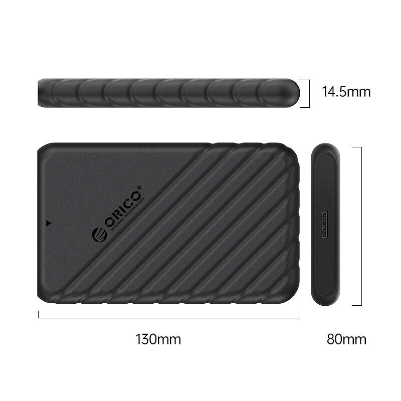 Rack Orico 25PW1-U3 USB 3.0 2.5” negru, carcasa din ABS rezistenta la socuri, compatibil cu HDD/SSD 2.5” SATA I/II/III (grosime maxima 9.5mm), suporta protocol UASP si TRIM, rata de transfer: 5Gbps, conectivitate USB 3.0, include cablu USB 3.0, plug and play, posibilitate hot swap, compatibilitate: Windows/Mac, conector Micro-USB, dimensiuni: 130x80x15mm