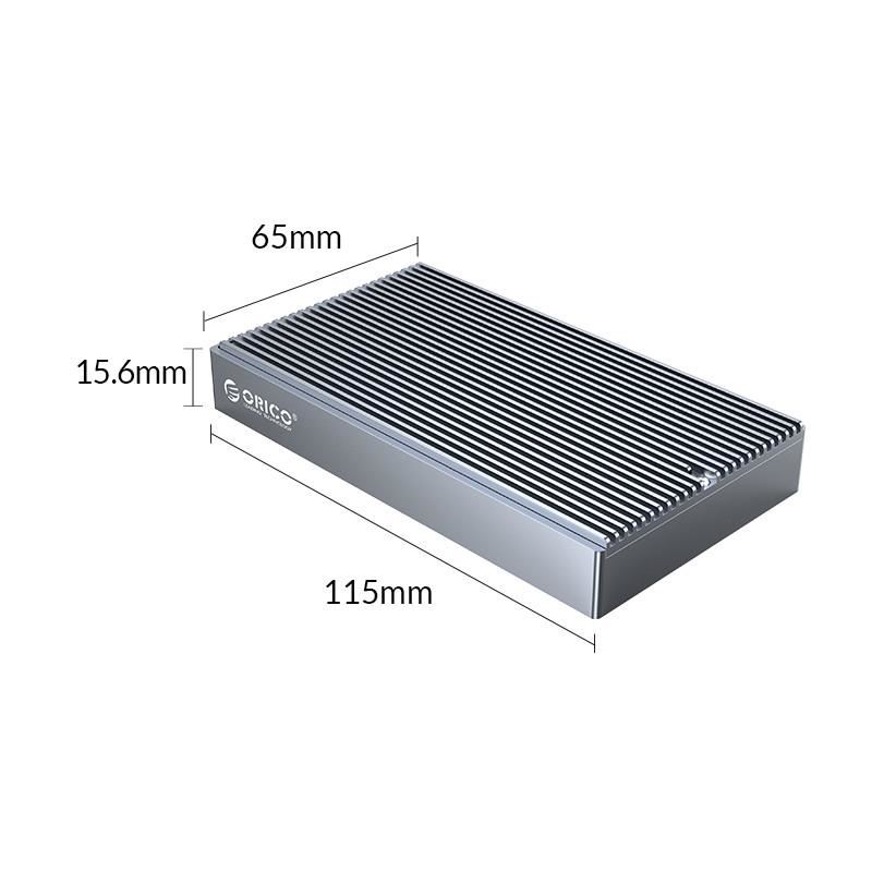Rack SSD Orico M2NV01-C3 USB3.1 GEN2 dual slot NVMe M.2 gri, compatibil cu SSD NVMe M.2, conectivitate USB3.1 GEN2, constructie din aluminiu, partea superioara fiind de tip radiator pentru o racire optima, capacitate maxima: 4TB(cate 2TB pe fiecare slot), suporta M.2 B+M-KEY (SATA) si M.2 M-KEY (NVMe), controller: JMS581D, protocol UASP, dimensiuni M.2 compatibile: 2230/2242/2260/2280, buton power, include USB3.1 GEN2 10Gbps Type-C – Type-C (50cm) si cablu USB Type-A to Type-C (50cm), Plug & Play, conectori: 1x USB Type-C si DC (alimentatorul nu este inclus in pachet), compatibilitate: Windows/Mac OS/Linux, dimensiuni: 115x65x15.6mm