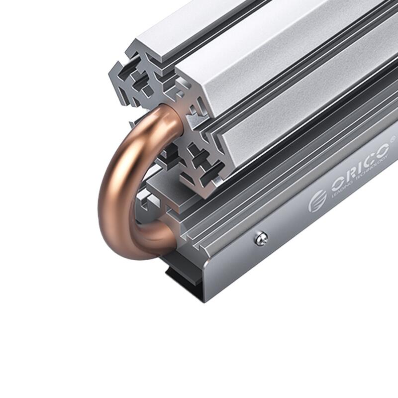 Radiator SSD M.2 Orico M2HS6 argintiu, material: curpu si aluminiu, compatibil cu M Key si B Key, dimensiuni M.2 compatibile: 2280 (22x80mm), reduce temperatura de operare a M.2-ului cu aproximativ15-20°C, pachetul include PAD-uri termice, dimensiuni: 78x24.5x47mm