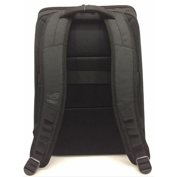 Rucsac Asus ROG BP1502 negru, material: 900D polyester, 600D polyester si 210D polyester, compatibil laptop-uri de maxim 15.6 inch, un compartiment principal si un buzunar mic exterior pe partea din fata, greutate: 0.69kg, dimensiuni: 300x460x145mm