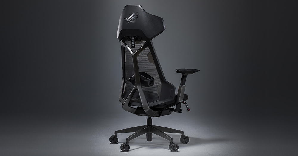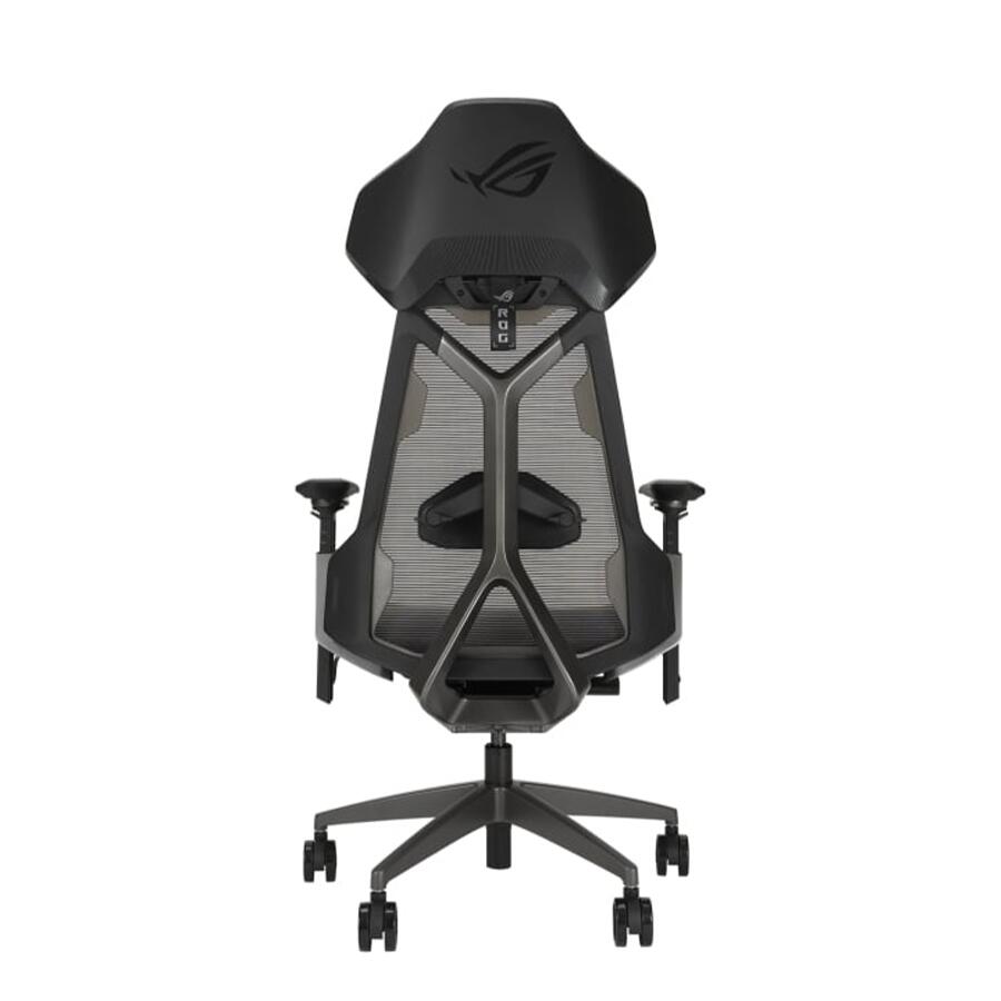 Scaunul de gaming ROG Destrier Ergo canalizează aspectul unui exoschelet cibernetic, adăugând o notă futuristă oricărei configurații de gaming.