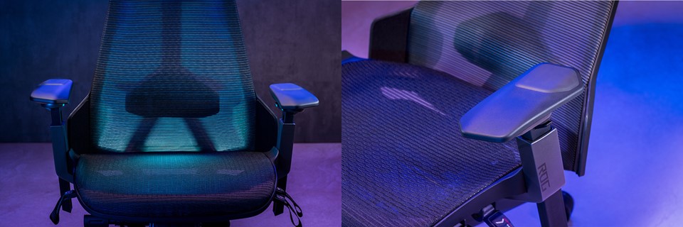 Scaunul de gaming ROG Destrier Ergo este proiectat atât pentru rezistență, cât și pentru confort, cu un cadru solid din aluminiu cu plasă respirabilă și o căptușeală moale din spumă PU - toate acestea contribuind la un aspect și o senzație generală incredibilă.