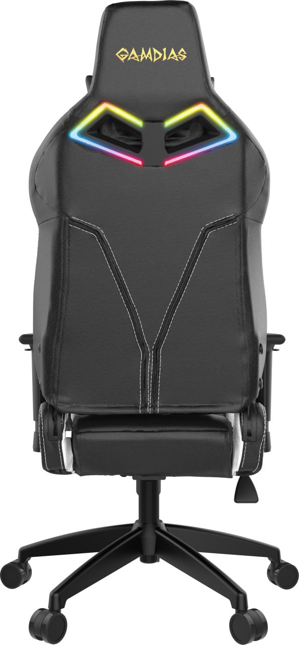 Gamdias Achilles E1 L Black/White, permite diverse reglaje: inaltime, inclinare, rotire 360°, inaltime scaun: 130-140cm, inaltime sezut: 44-54cm, inaltime spatar: 86cm, latime spatar: 55cm, latime sezut: 54cm, adancime sezut: 47cm, material captuseala: Leather style Vynil, echipat cu piston cu gaz clasa 4, echipat cu LED-uri RGB controlabile prin aplicatia HERA (necesita conectarea cablului USB la calculator; dupa configurare se poate conecta un power bank pentru a mentine LED-urile aprinse), inclinare spatar: 150°, greutate maxima suportata: 200kg, manere 2D