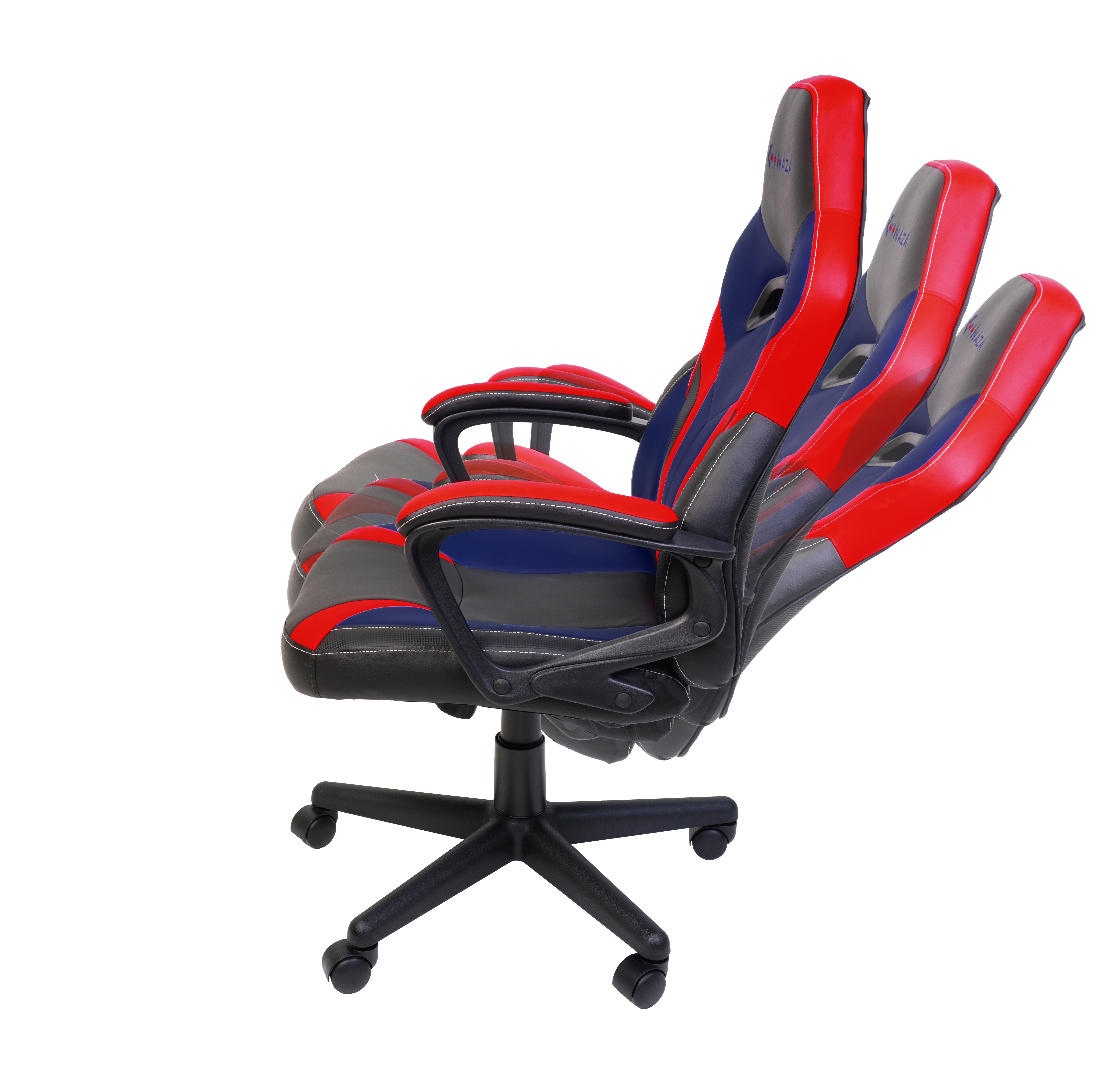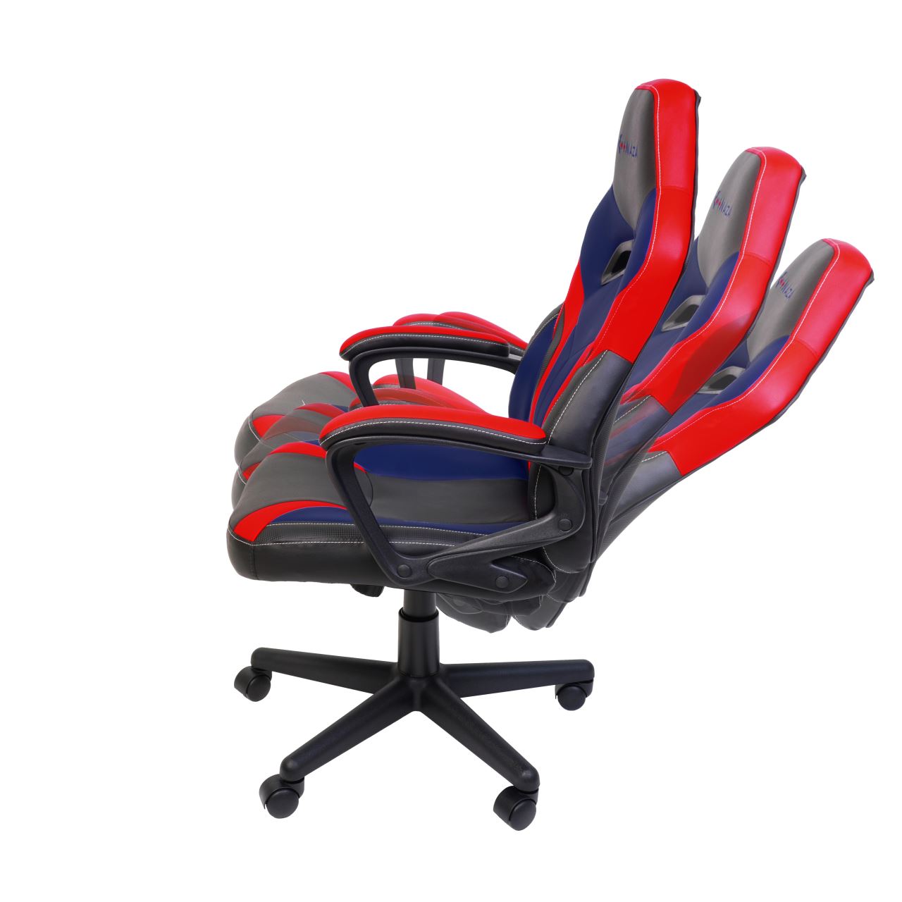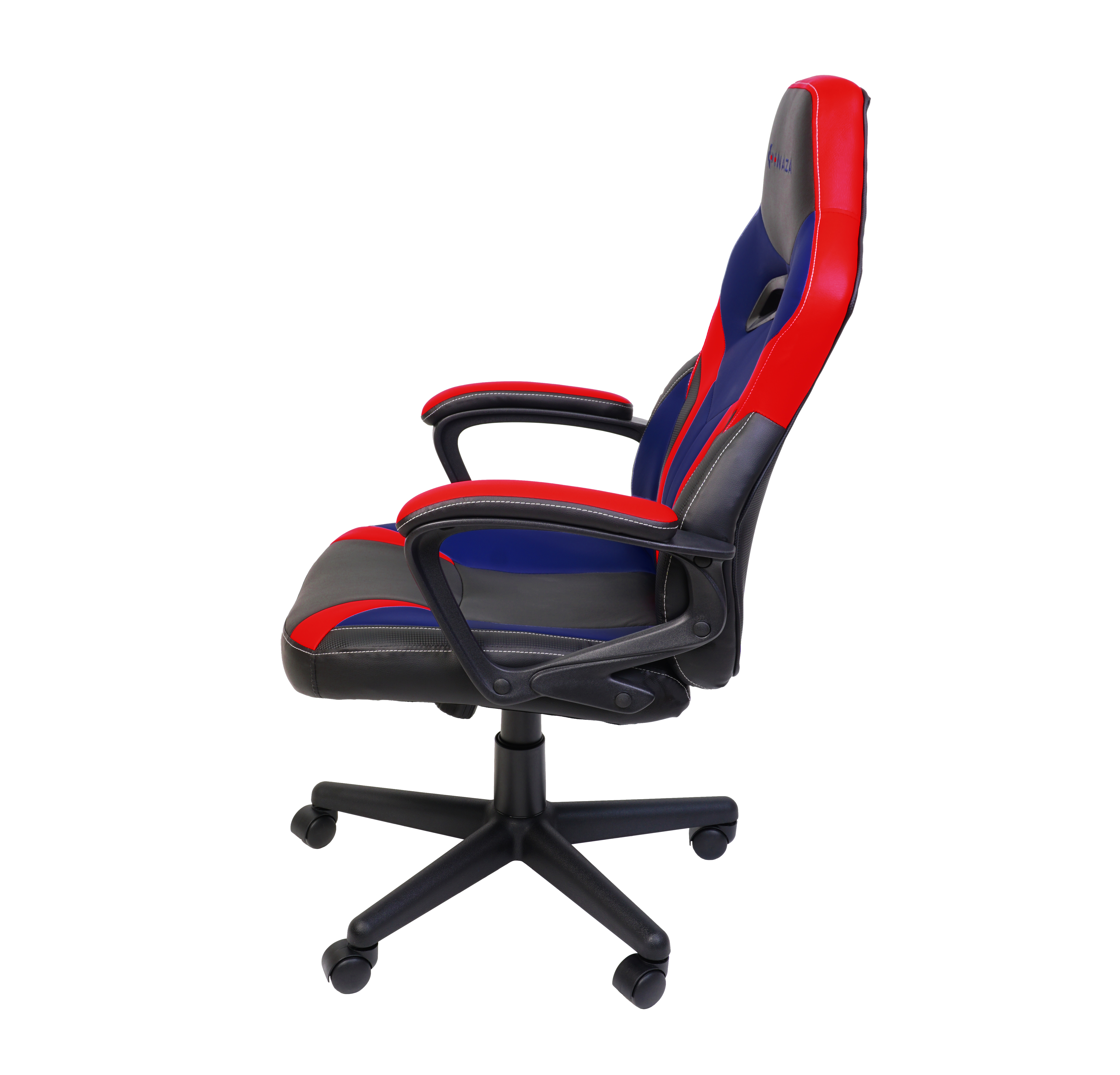 Scaun gaming Inaza Hero negru cu rosu si albastru, permite diverse reglaje: inaltime, inclinare, rotire 360°, manere fixe, material captuseala: Sintetic PU, echipat cu piston cu gaz clasa 3, latime sezut: 48cm, adancime sezut: 48cm, inaltime sezut reglabila: 46-56cm, inaltime spatar: 70cm, latime spatar: 46cm, inaltime scaun: 106-116cm, greutate maxima admisa: 130kg