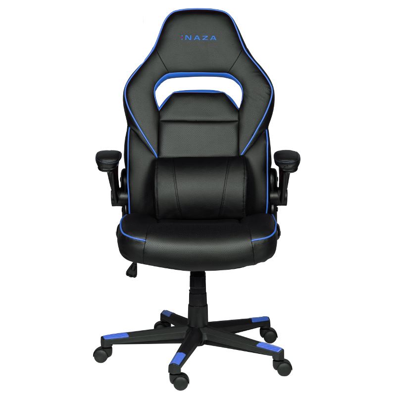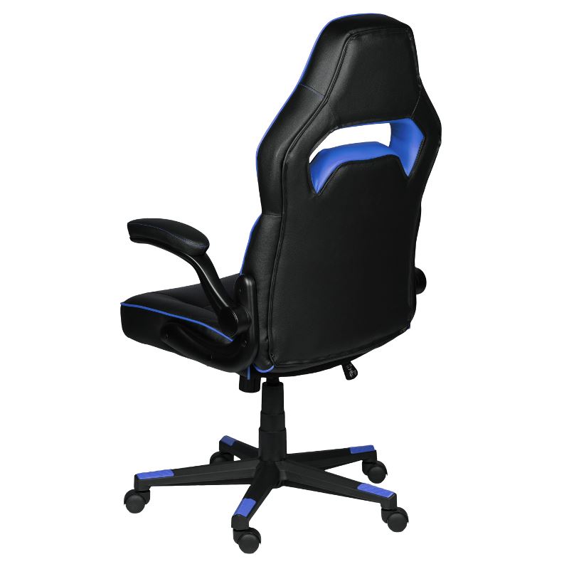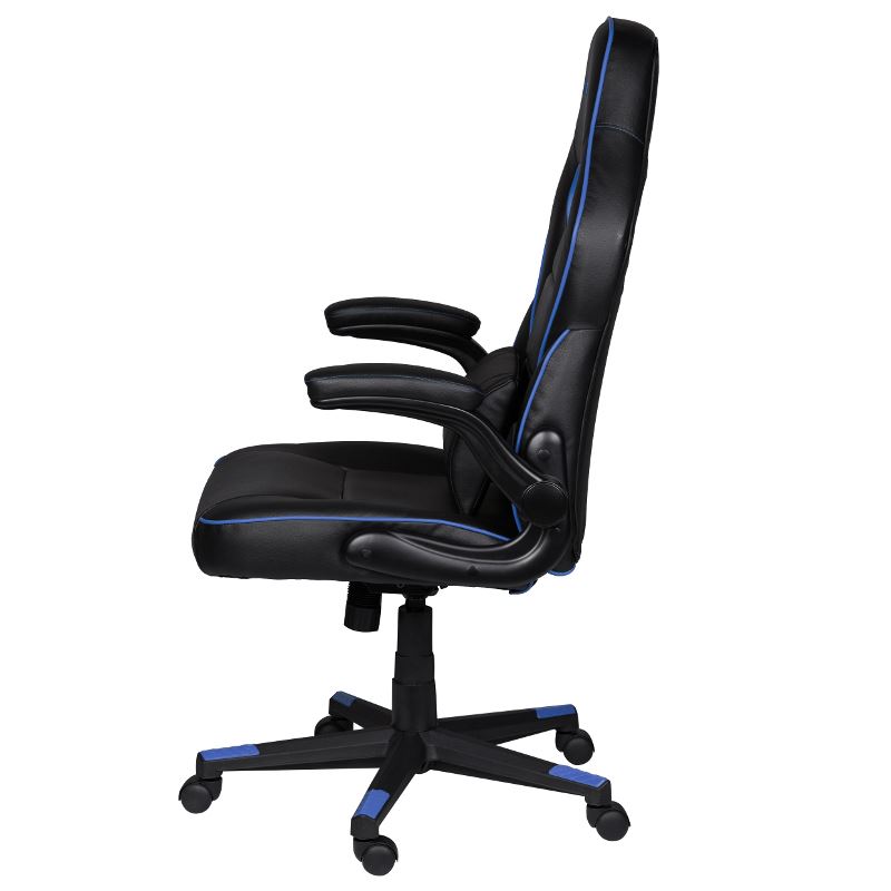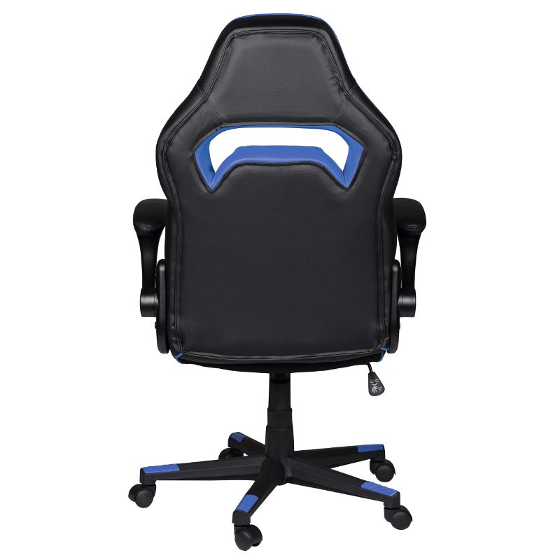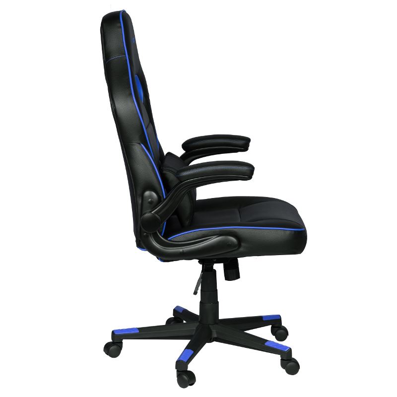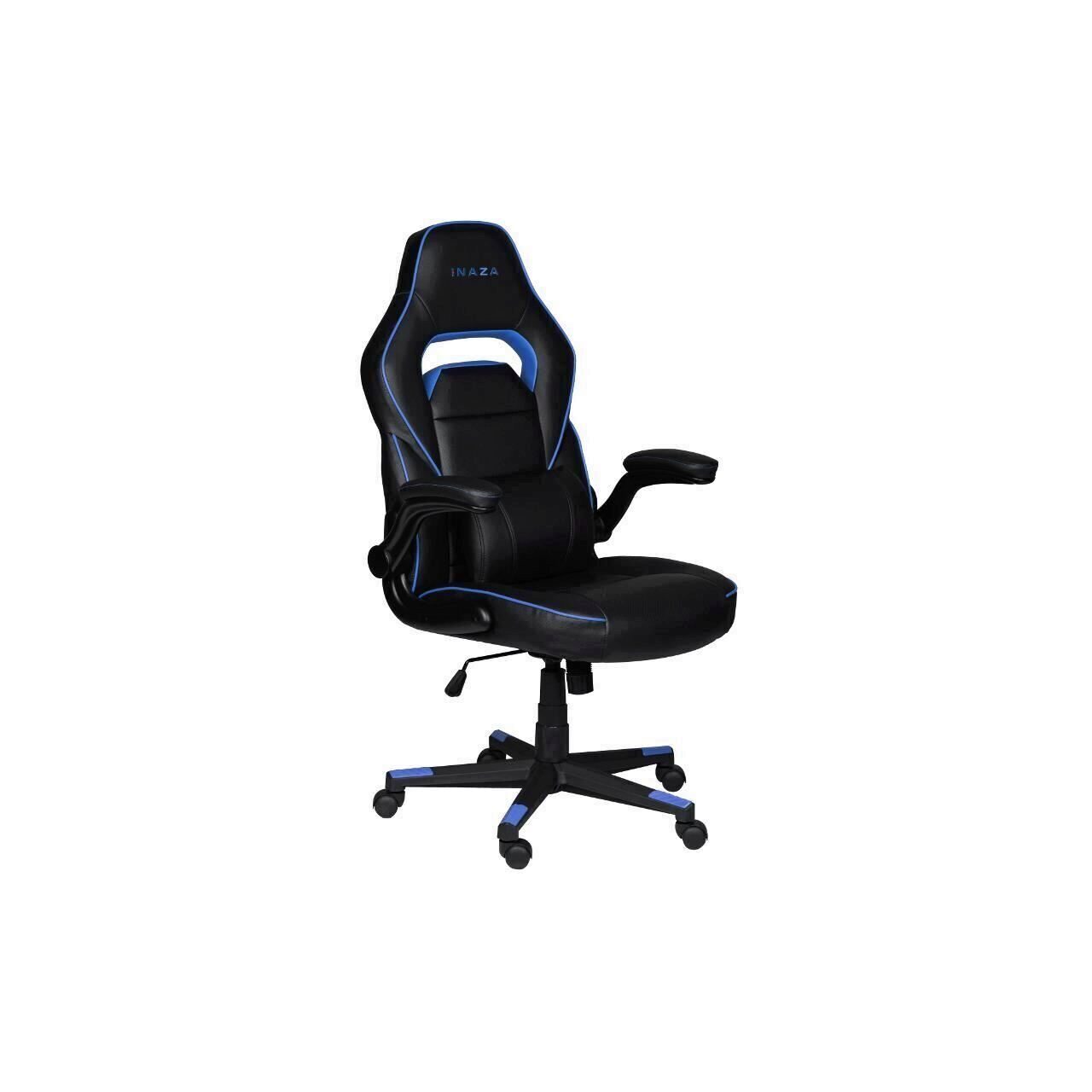 Inaza Interceptor Black/Blue, permite diverse reglaje: inaltime, inclinare 135°, rotire 360°, manere care se pot rabata, material captuseala: PU, echipat cu piston cu gaz clasa 4, latime scaun: 54cm, adancime scaun: 50cm, inaltime sezut reglabila: 44-52cm, inaltime spatar: 77cm, latime spatar: 56cm, inaltime scaun: 116-124cm