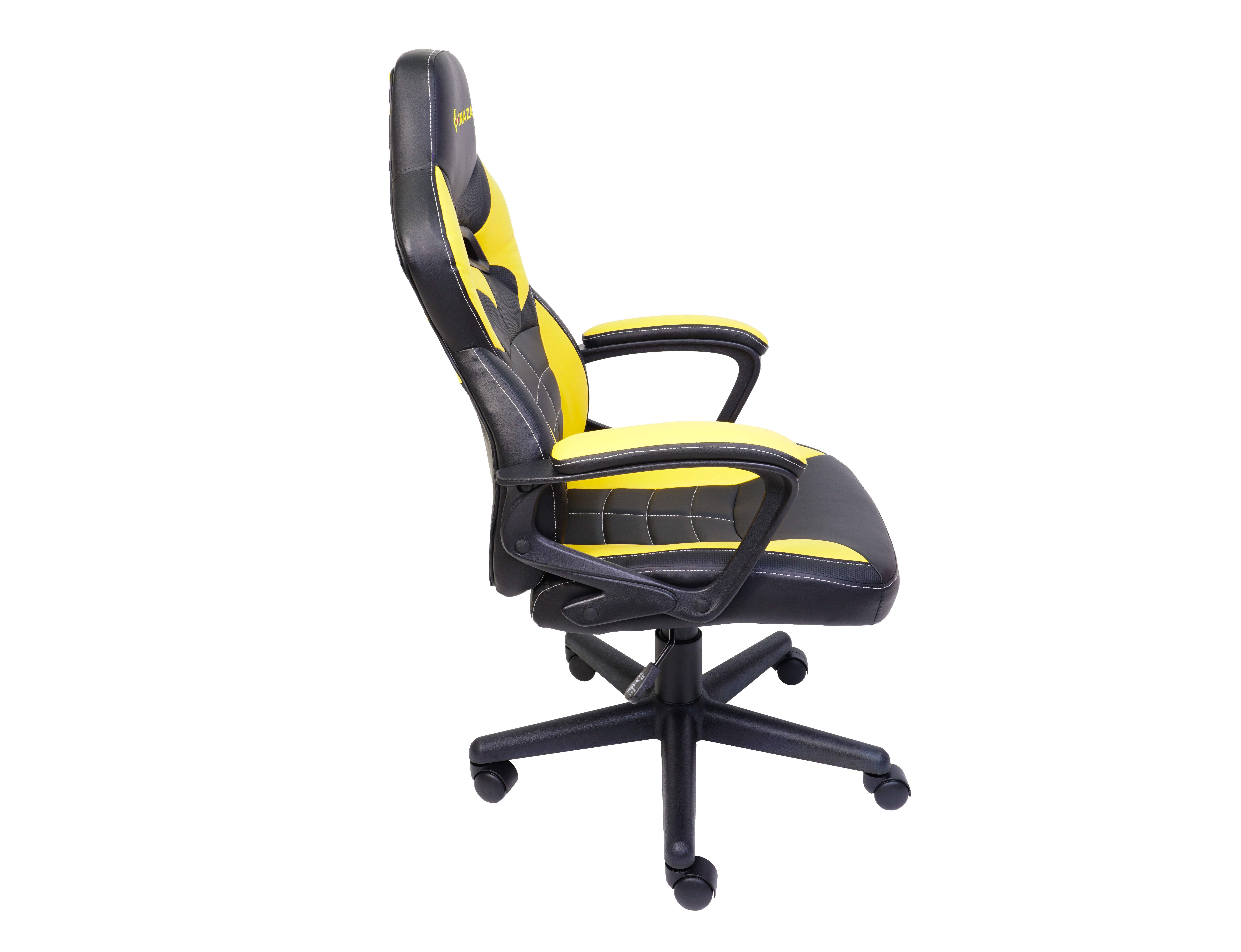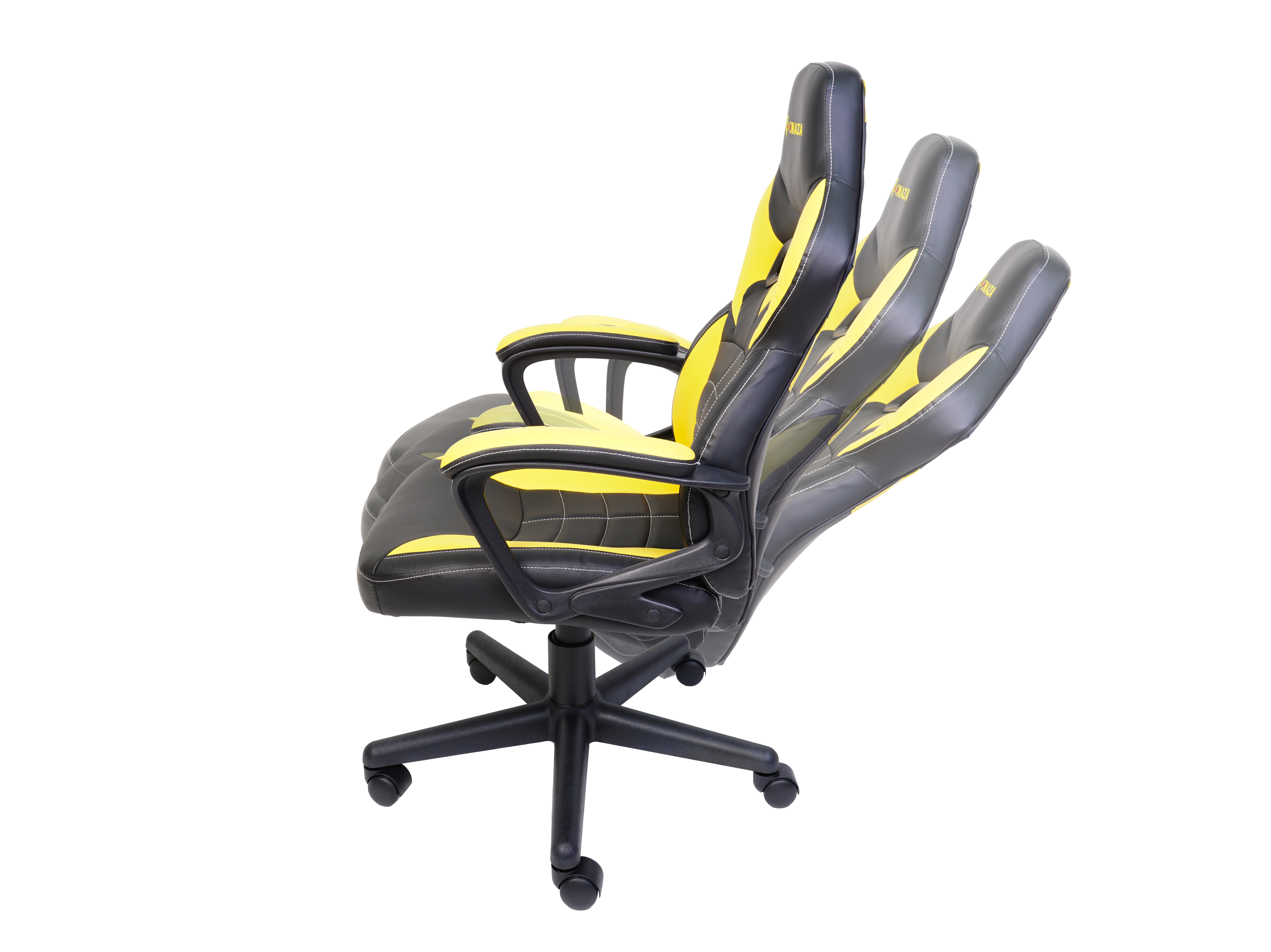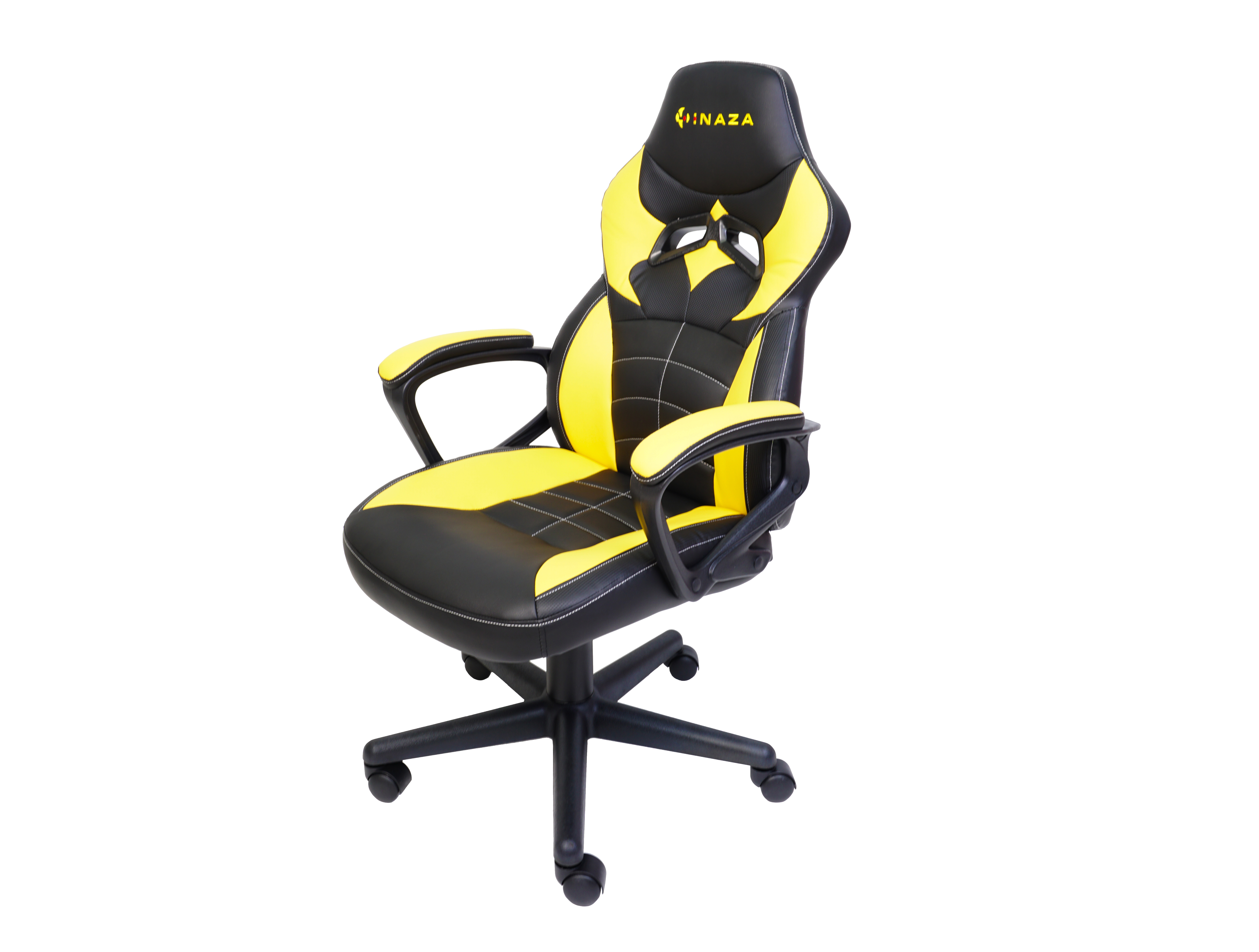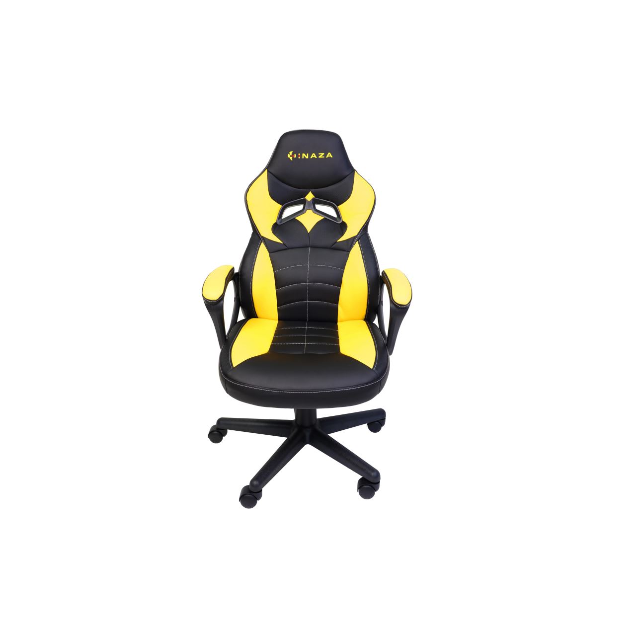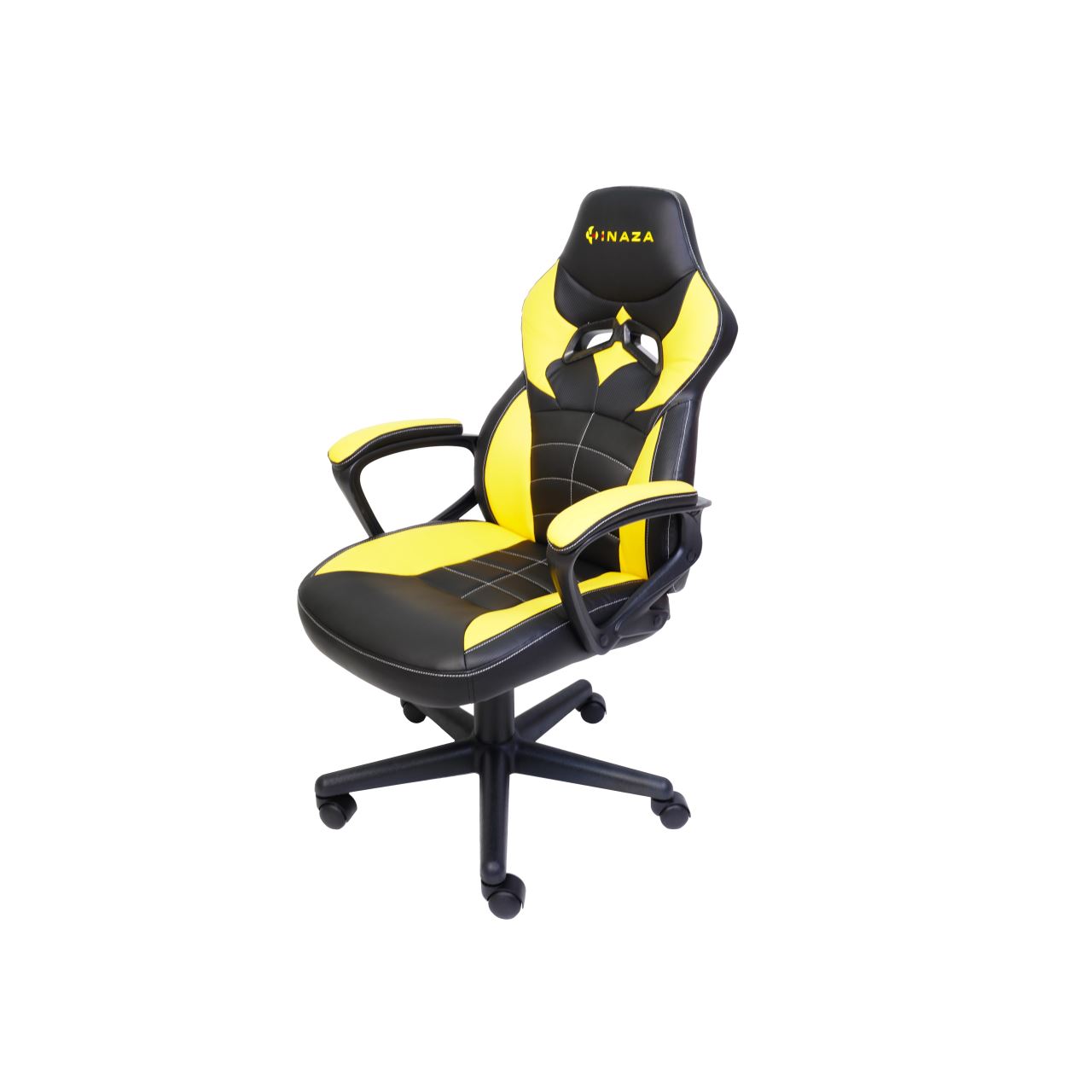 Scaun gaming Inaza Knight negru cu galben, permite diverse reglaje: inaltime, inclinare, rotire 360°, manere fixe, material captuseala: Sintetic PU, echipat cu piston cu gaz clasa 3, latime sezut: 48cm, adancime sezut: 48cm, inaltime sezut reglabila: 46-56cm, inaltime spatar: 70cm, latime spatar: 46cm, inaltime scaun: 106-116cm, greutate maxima admisa: 130kg