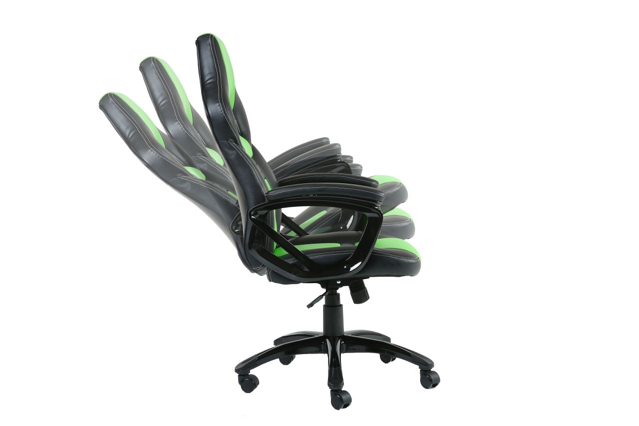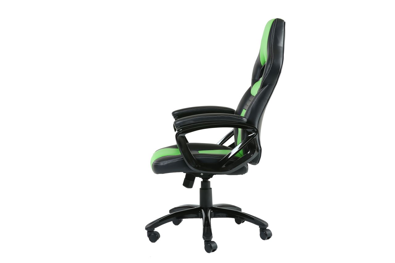 Inaza Legion Black/Green, permite diverse reglaje: inaltime, inclinare, rotire 360°, material captuseala: PU, echipat cu piston cu gaz clasa 3, latime scaun: 51cm, adancime scaun: 51cm, inaltime scaun reglabila: 46-56cm, inaltime spatar: 76cm, latime spatar: 51cm, inaltime scaun: 116-126cm