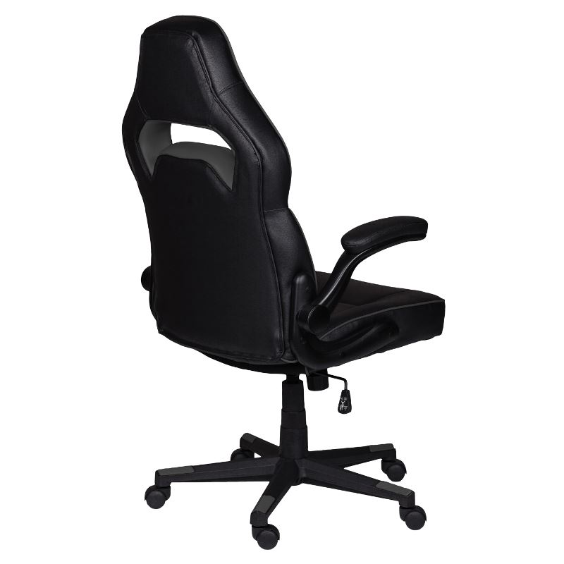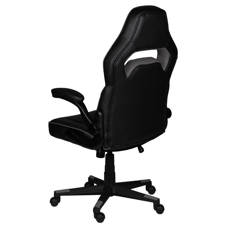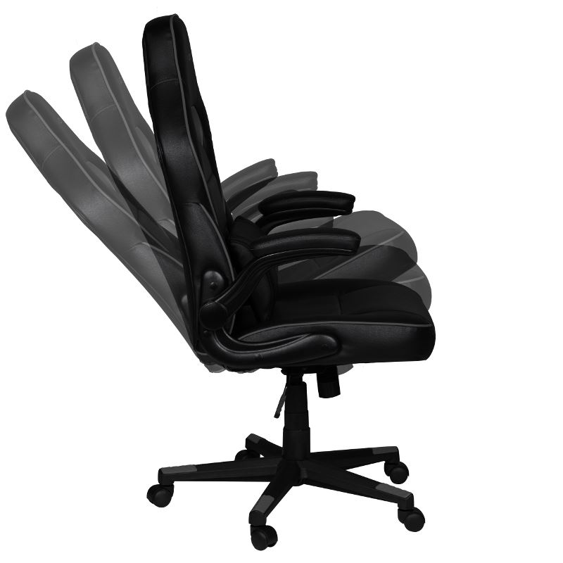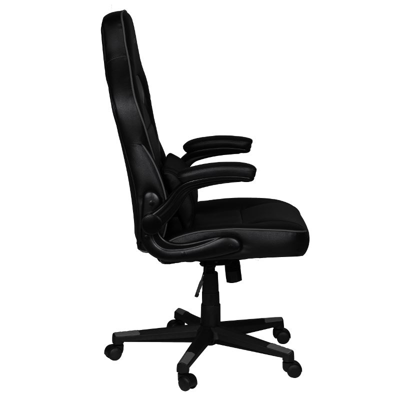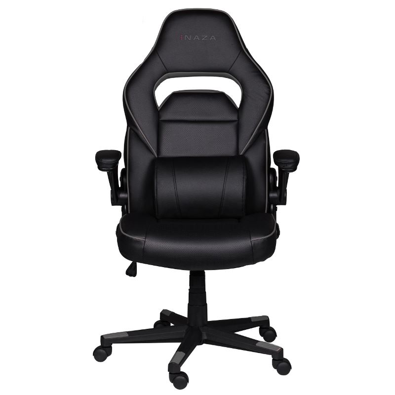 Inaza Interceptor Black, permite diverse reglaje: inaltime, inclinare 135°, rotire 360°, manere care se pot rabata, material captuseala: PU, echipat cu piston cu gaz clasa 4, latime scaun: 54cm, adancime scaun: 50cm, inaltime sezut reglabila: 44-52cm, inaltime spatar: 77cm, latime spatar: 56cm, inaltime scaun: 116-124cm