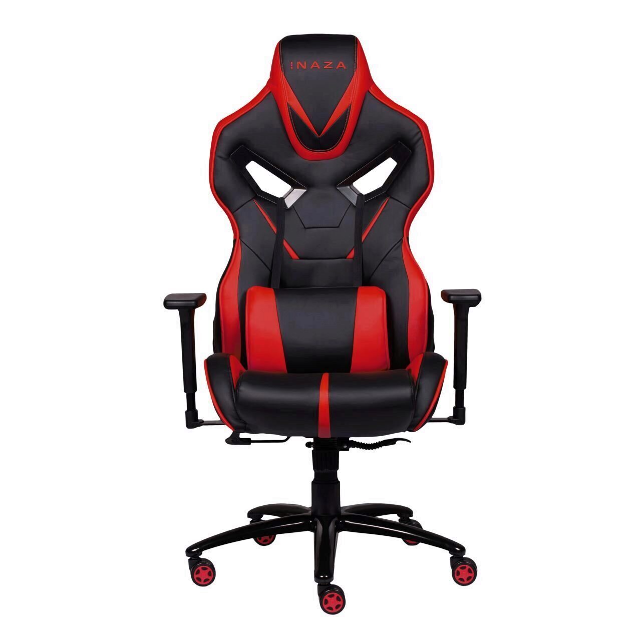 Inaza Predator Black/Red, permite diverse reglaje: inaltime, inclinare 135°, rotire 360°, manere 3D, material captuseala: PU, echipat cu piston cu gaz clasa 4, latime scaun: 56cm, adancime scaun: 54cm, inaltime sezut reglabila: 44-52cm, inaltime spatar: 84cm, latime spatar: 54cm, inaltime scaun: 124-132cm