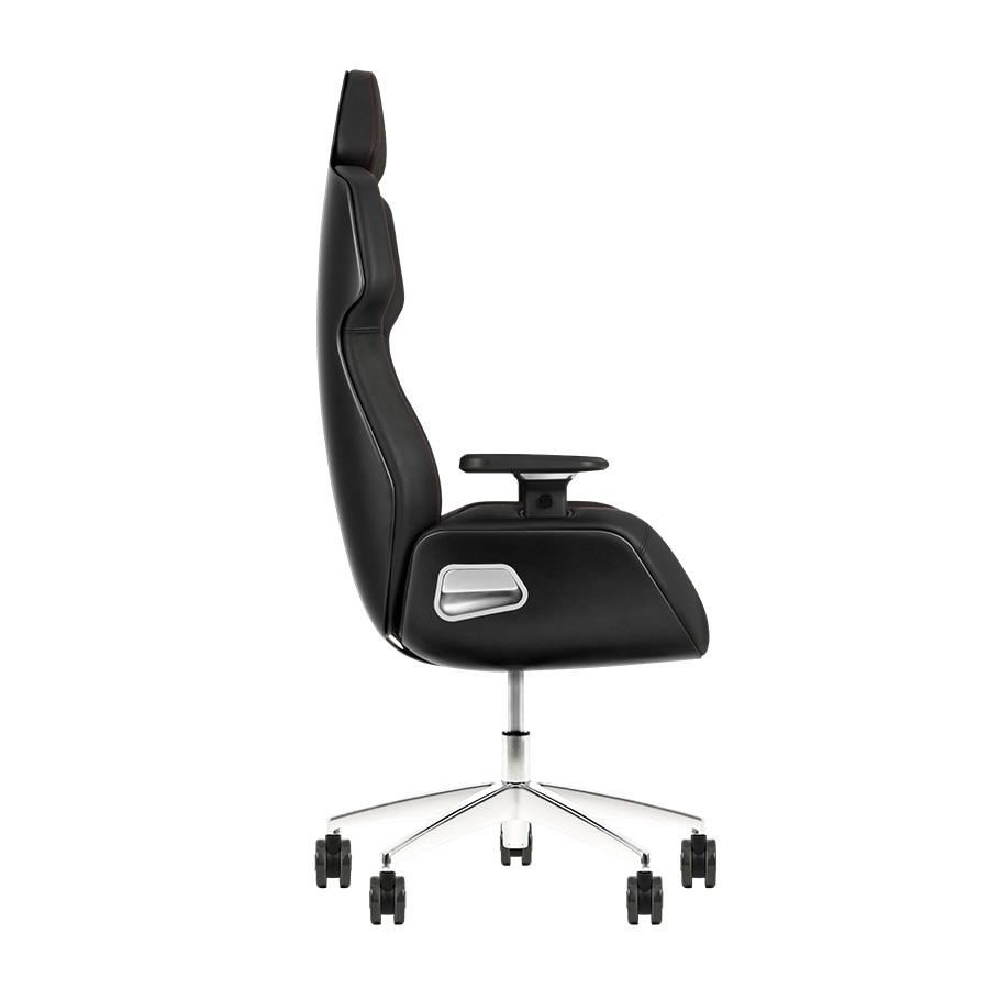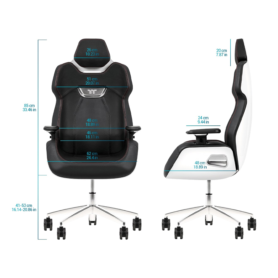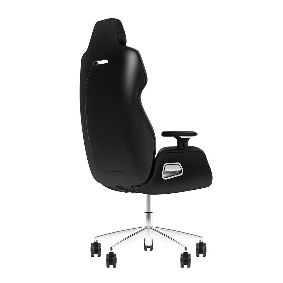 Scaun gaming Thermaltake Premium Argent E700 negru, cadru si baza din aluminiu, insertii din aluminiu, ofera ergonomie si conform ridicat, permite diverse reglaje: inaltime, inclinare 107°-126°, rotire 360°, manere reglabile 4D, tetiera reglabila pe inaltime, roti de 75mm, material captuseala: piele, spatar cu piele perforata, echipat cu piston cu gaz clasa 4, adancime zona sezut: 48cm, latime zona sezut: 46cm, inaltime scaun reglabila: 41-53cm, inaltime spatar: 85cm, latime spatar: 51cm, inaltime scaun: 126-138cm, greutate maxima: 150kg