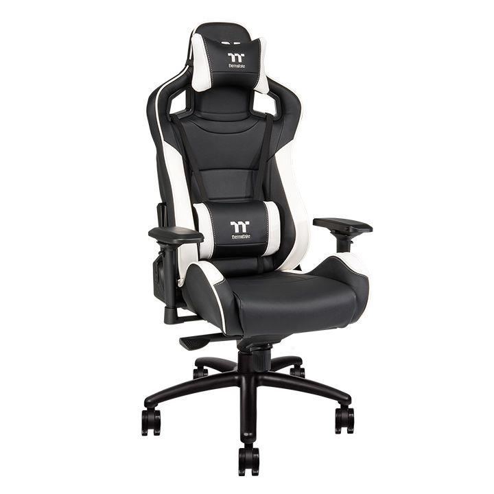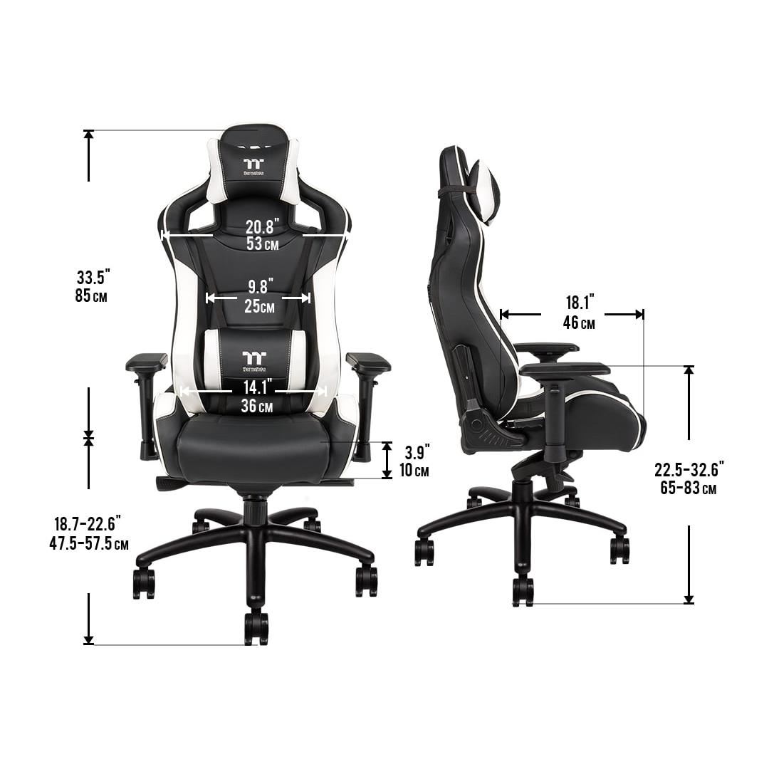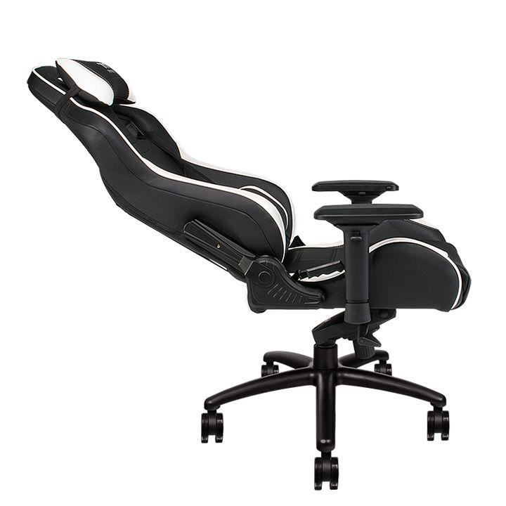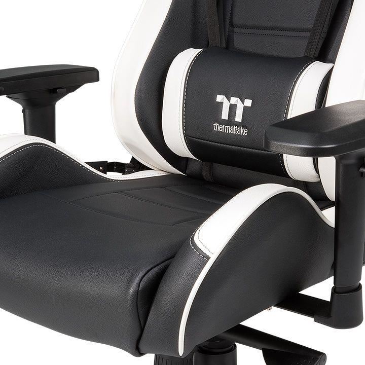 Scaun gaming Thermaltake X Fit negru cu alb, cadru din otel, baza din aluminiu, captusit cu spuma densa (75kg/m3 pentru spatar si 55kg/m3 pentru sezut) pentru ergonomie si conform ridicate, permite diverse reglaje: inaltime, inclinare 85°-160°, rotire 360°, manere reglabile 4D, material captuseala: piele naturala, echipat cu piston cu gaz clasa 4, adancime zona sezut: 46cm, latime zona sezut: 36cm, inaltime scaun reglabila: 48-58cm, inaltime spatar: 85cm, latime spatar: 53cm, inaltime scaun: 132.5-142.5cm, greutate maxima: 120kg, greutate scaun: 27kg