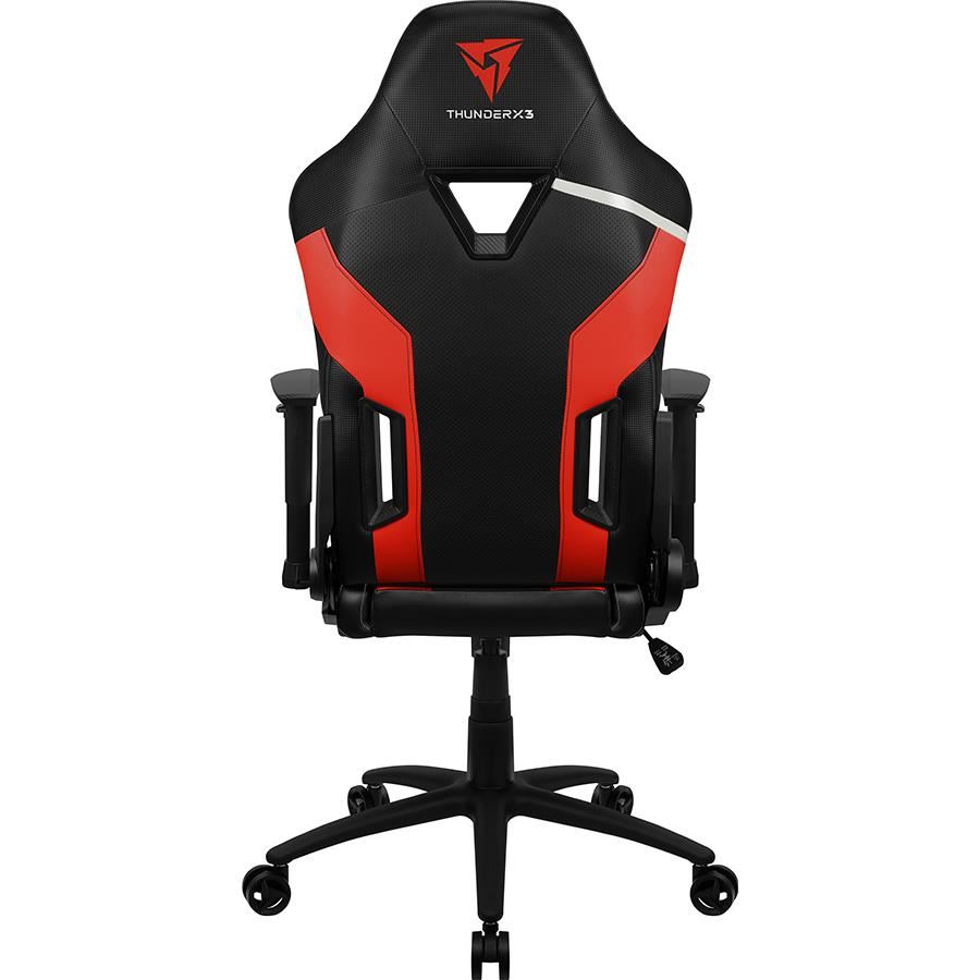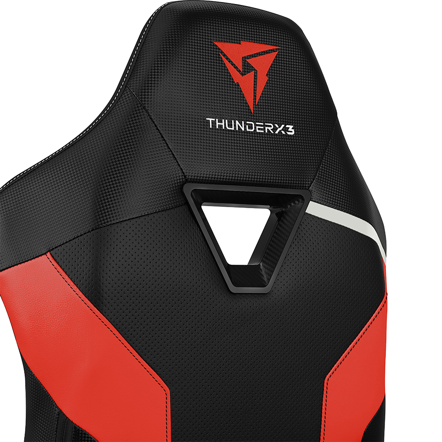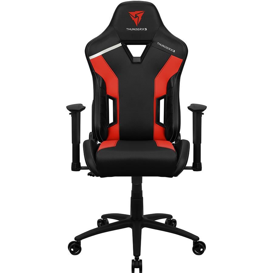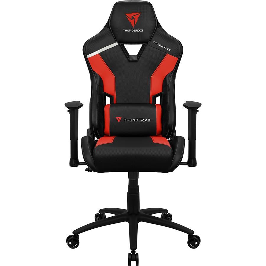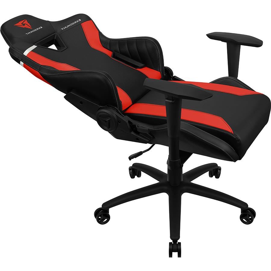 Scaun gaming Thunder X3 TC3 negru cu rosu, permite diverse reglaje: inaltime, inclinare, rotire 360°, balans 3°-18°, inaltime scaun: 118-128cm, inaltime sezut: 47-57cm, inaltime spatar: 81cm, latime spatar: 55cm, latime sezut: 52cm, adancime sezut: 52cm, material captuseala: Leatherette with carbon pattern, echipat cu piston cu gaz clasa 4, inclinare spatar: 135°, include perna lombara si cervicala, greutate maxima suportata: 125kg, manere 2D
