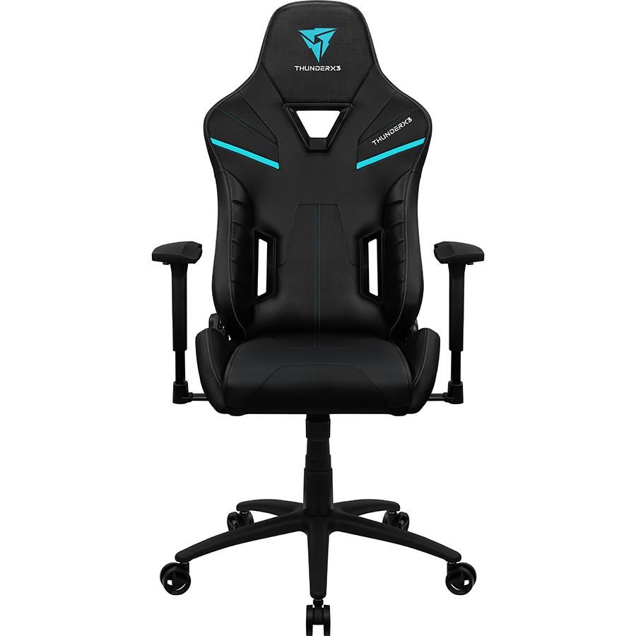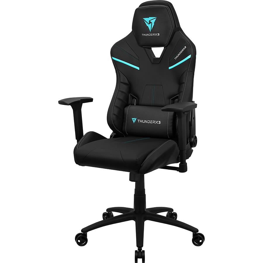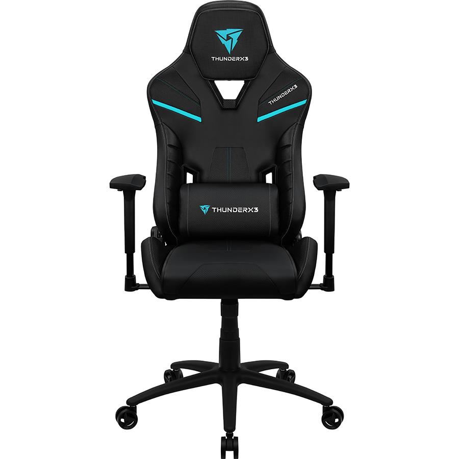 Scaun gaming Thunder X3 TC5 Jet negru, permite diverse reglaje: inaltime, inclinare, rotire 360°, balans 3°-18°, inaltime scaun: 125-135cm, inaltime sezut: 47-57cm, inaltime spatar: 83cm, latime spatar: 56cm, latime sezut: 54cm, adancime sezut: 54cm, material captuseala: Leatherette with carbon pattern, echipat cu piston cu gaz clasa 4, inclinare spatar: 135°, include perna lombara si cervicala, greutate maxima suportata: 125kg, manere 3D