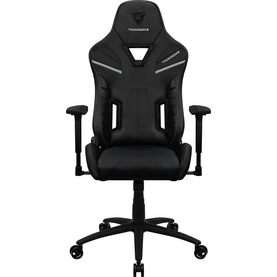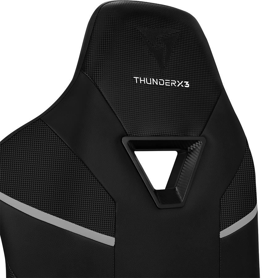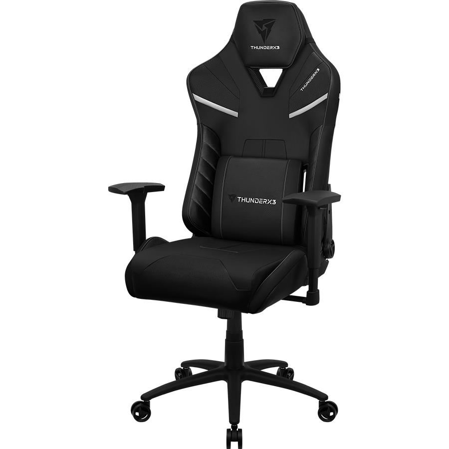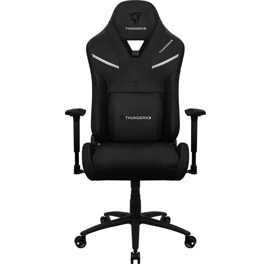 Scaun gaming Thunder X3 TC5 Max negru, permite diverse reglaje: inaltime, inclinare, rotire 360°, balans 3°-18°, inaltime scaun: 133-143cm, inaltime sezut: 51-61cm, inaltime spatar: 90cm, latime spatar: 60cm, latime sezut: 60cm, adancime sezut: 55cm, material captuseala: Leatherette with carbon pattern, echipat cu piston cu gaz clasa 4, inclinare spatar: 135°, include perna lombara si cervicala, greutate maxima suportata: 125kg, manere 3D