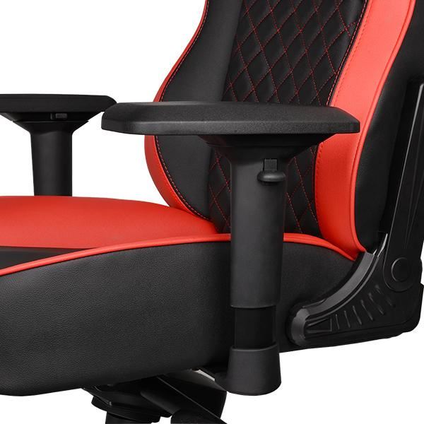 Tt eSPORTS GT FIT Black/Red, cadru din otel, baza din aluminiu, captusit cu spuma densa (75kg/m3) pentru ergonomie si conform ridicate, permite diverse reglaje: inaltime, inclinare 85°-160°, rotire 360°, manere reglabile 4D, material captuseala: piele PVC premium, echipat cu piston cu gaz clasa 4, adnacime zona sezut: 46cm, latime zona sezut: 36cm, inaltime scaun reglabila: 47.5-57.5cm, inaltime spatar: 85cm, latime spatar: 53cm, inaltime scaun: 132.5-142.5cm, greutate maxima: 120kg, greutate scaun: 27.2kg